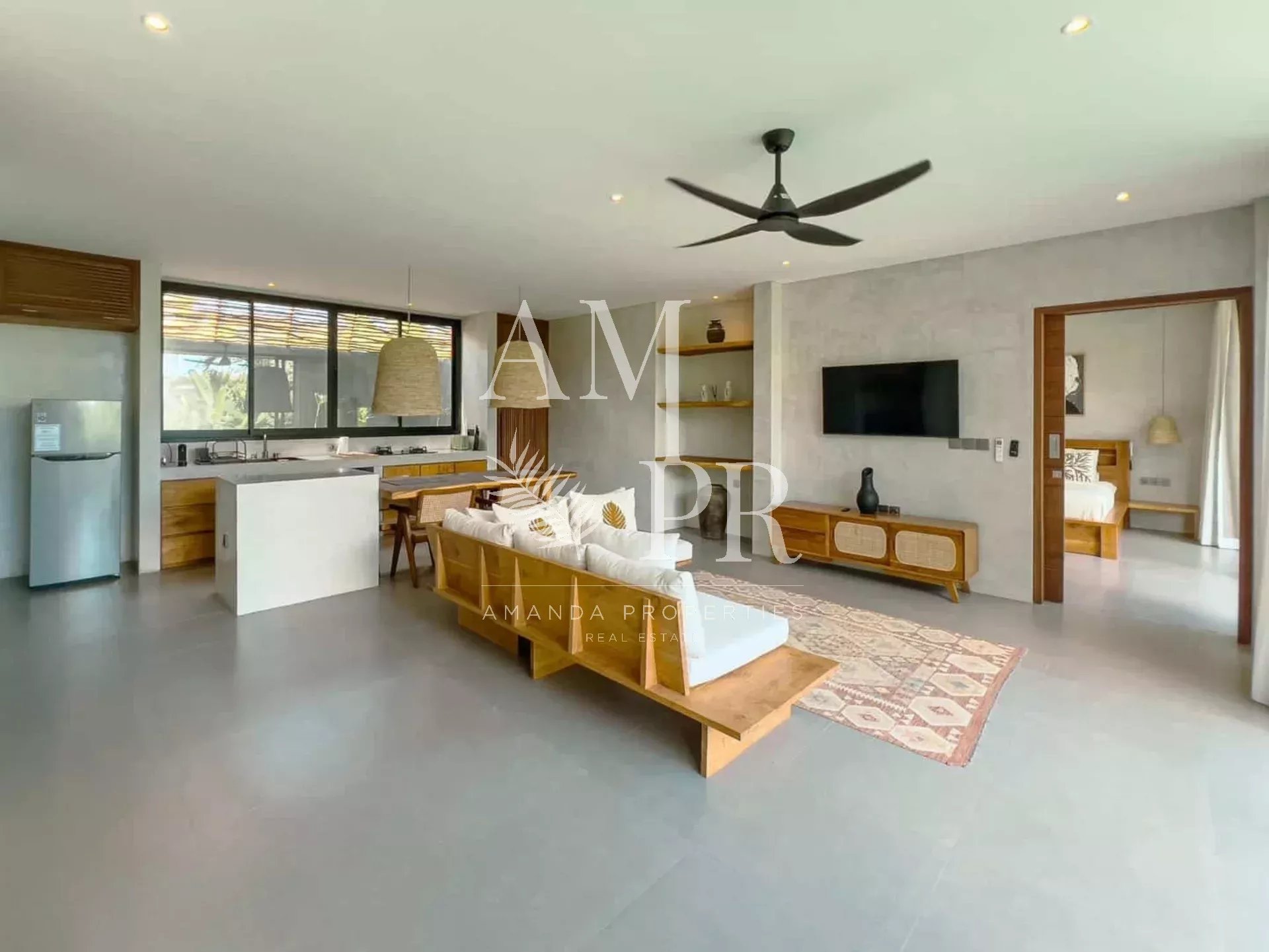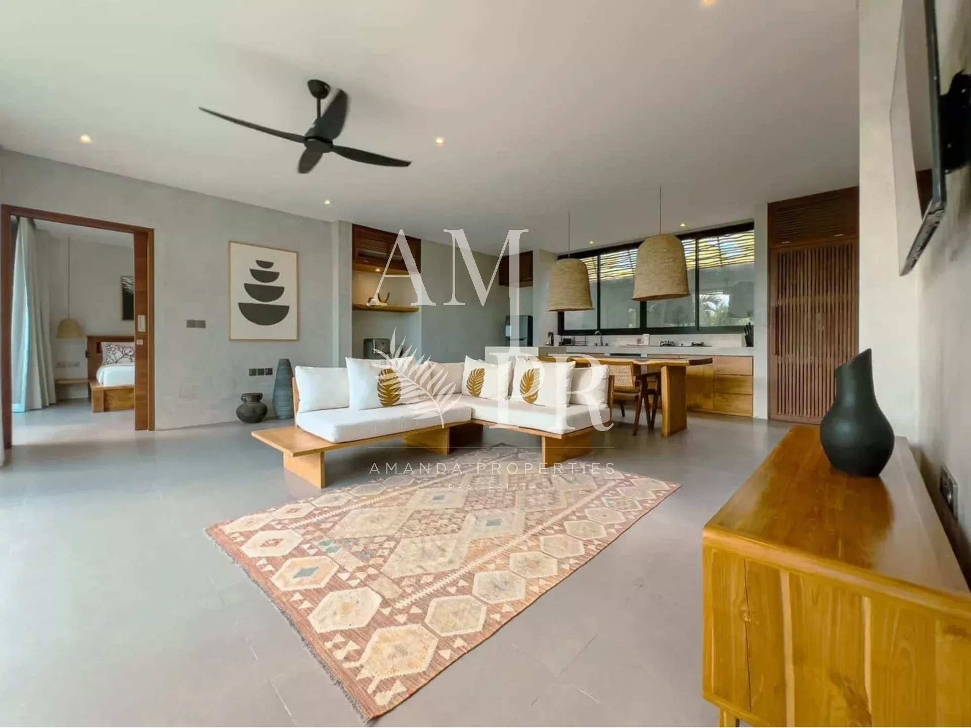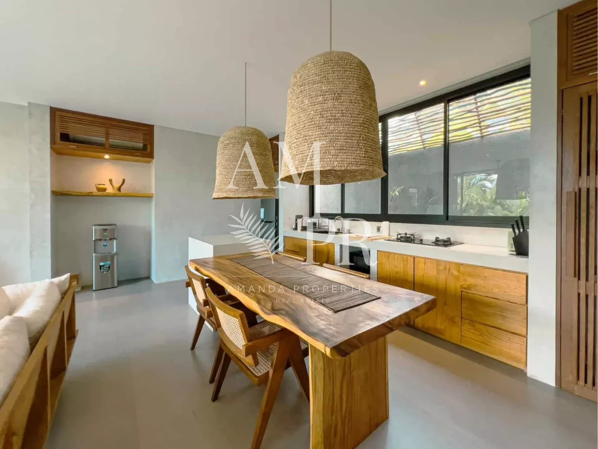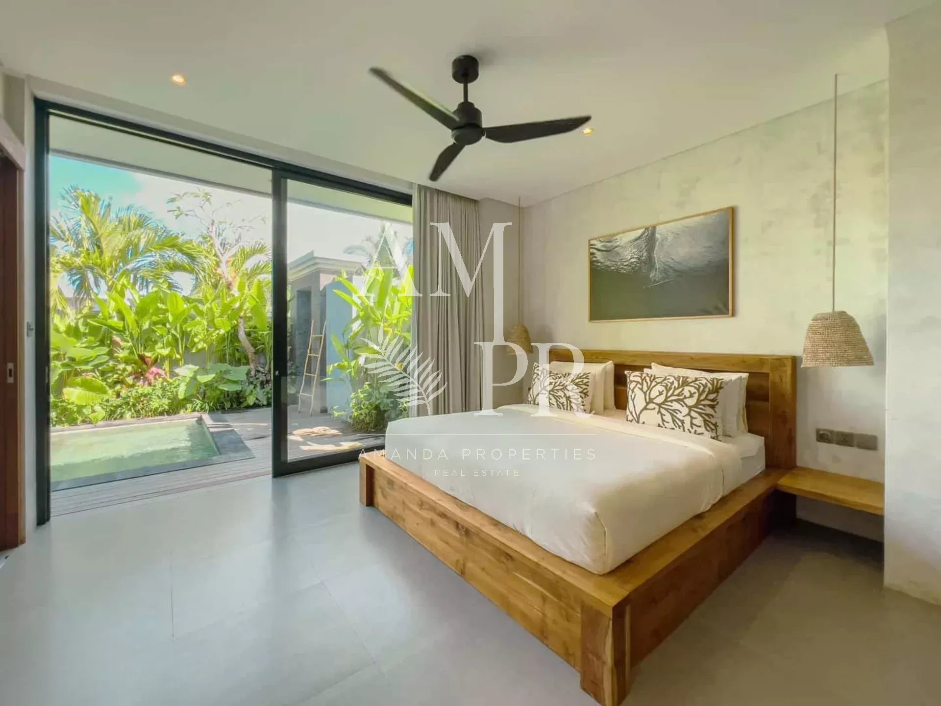 Pecatu – Sud de Bali | 2 chambres | 2 salles de bain | 104 m² habitables | 300 m² de terrain | Construction 2025 | Disponible immédiatement Nichée sur les hauteurs de Bingin, dans l’un des quartiers les plus prisés du sud de Bali, cette villa contemporaine entièrement meublée incarne l’élégance tropicale moderne. Offrant 104 m² d’espace habitable sur un terrain de 300 m², elle séduit par ses lignes épurées, son atmosphère apaisante et sa proximité avec les plages emblématiques d’Uluwatu, dont Padang Padang à seulement 8 minutes. Une architecture fluide et lumineuse Dès l’entrée, vous serez accueilli par une ambiance chaleureuse mêlant bois naturel, finitions soignées et larges baies vitrées qui inondent les pièces de lumière. Le salon spacieux s’ouvre directement sur la piscine privée, créant une parfaite continuité entre intérieur et extérieur. La cuisine ouverte, moderne et fonctionnelle, jouxte la salle à manger pour un maximum de confort. Les deux chambres, chacune avec salle de bain attenante, bénéficient d’un accès direct à la terrasse et au jardin. La suite parentale est dotée d’une baignoire et offre une vue apaisante sur l’extérieur. Un cadre de vie privilégié À l’extérieur, la piscine à débordement est entourée d’une terrasse en bois et d’un jardin tropical soigneusement paysagé. Un confortable lit de repos extérieur invite à la détente dans un environnement intime et naturel. Située dans un quartier calme et verdoyant, cette propriété allie sérénité, élégance et fonctionnalité. Vous serez à proximité immédiate des cafés, restaurants, supermarchés et salles de sport. Le tout dans un environnement idéal pour vivre ou investir. Informations clés Statut : Bail de 23,5 ans (avec extension possible de 10 ans) Année de construction : 2025 Superficie : 104 m² habitables sur 300 m² de terrain Entièrement meublée Prête à emménager ou à louer immédiatement Fort potentiel locatif dans l’un des quartiers les plus recherchés de Bali Cette villa représente une opportunité rare d’acquérir une résidence secondaire ou un bien d’investissement dans un cadre exceptionnel.