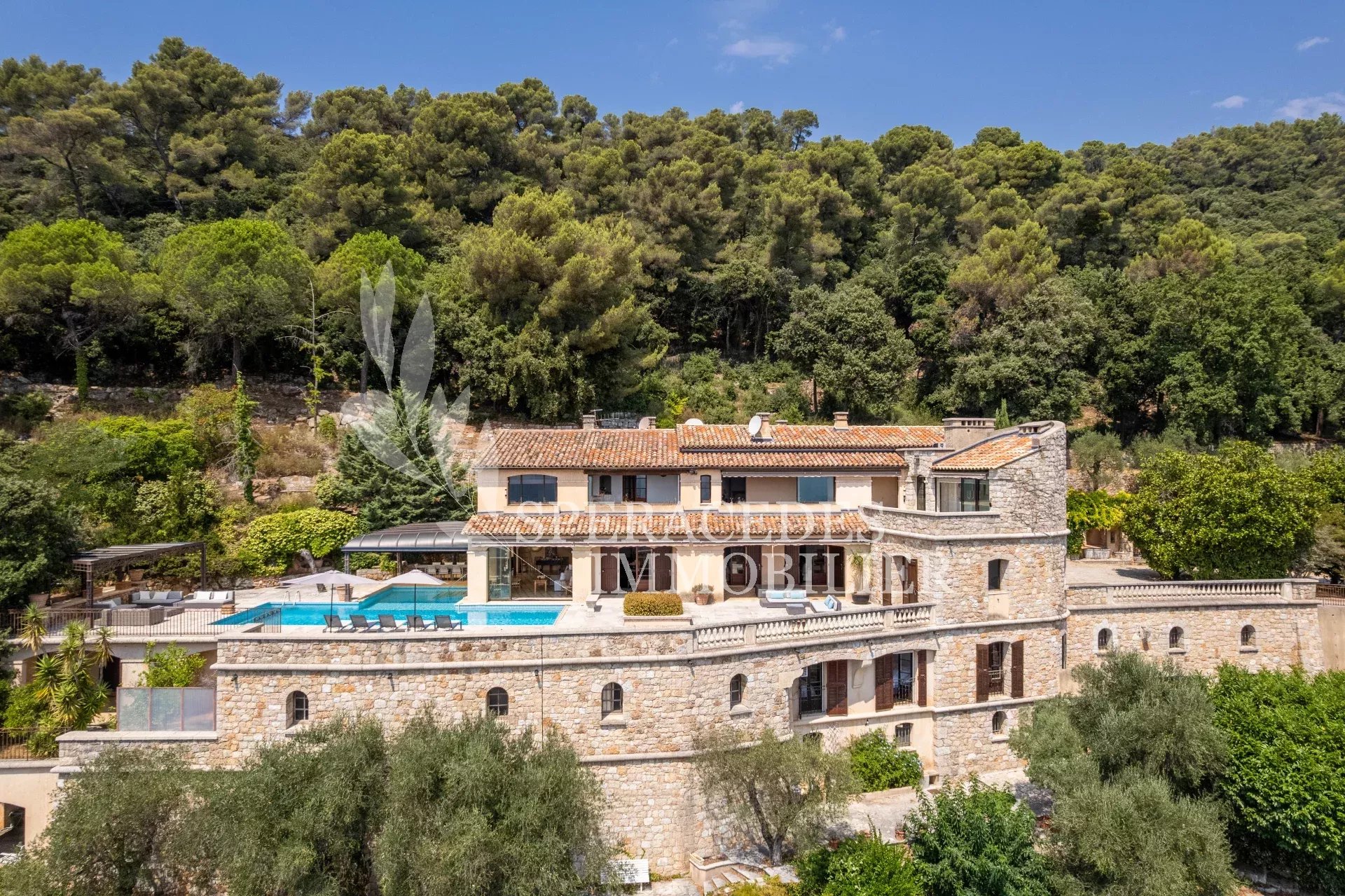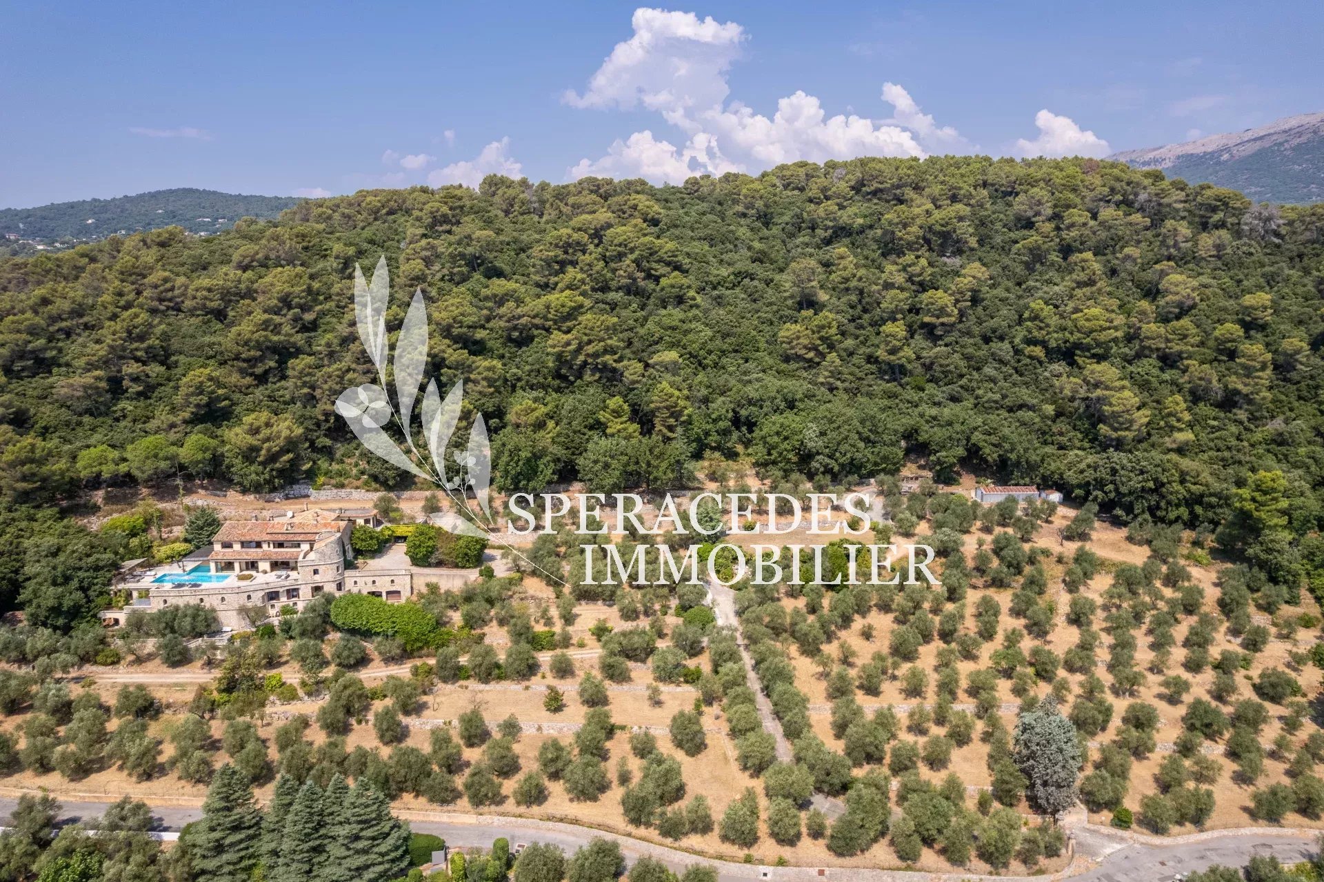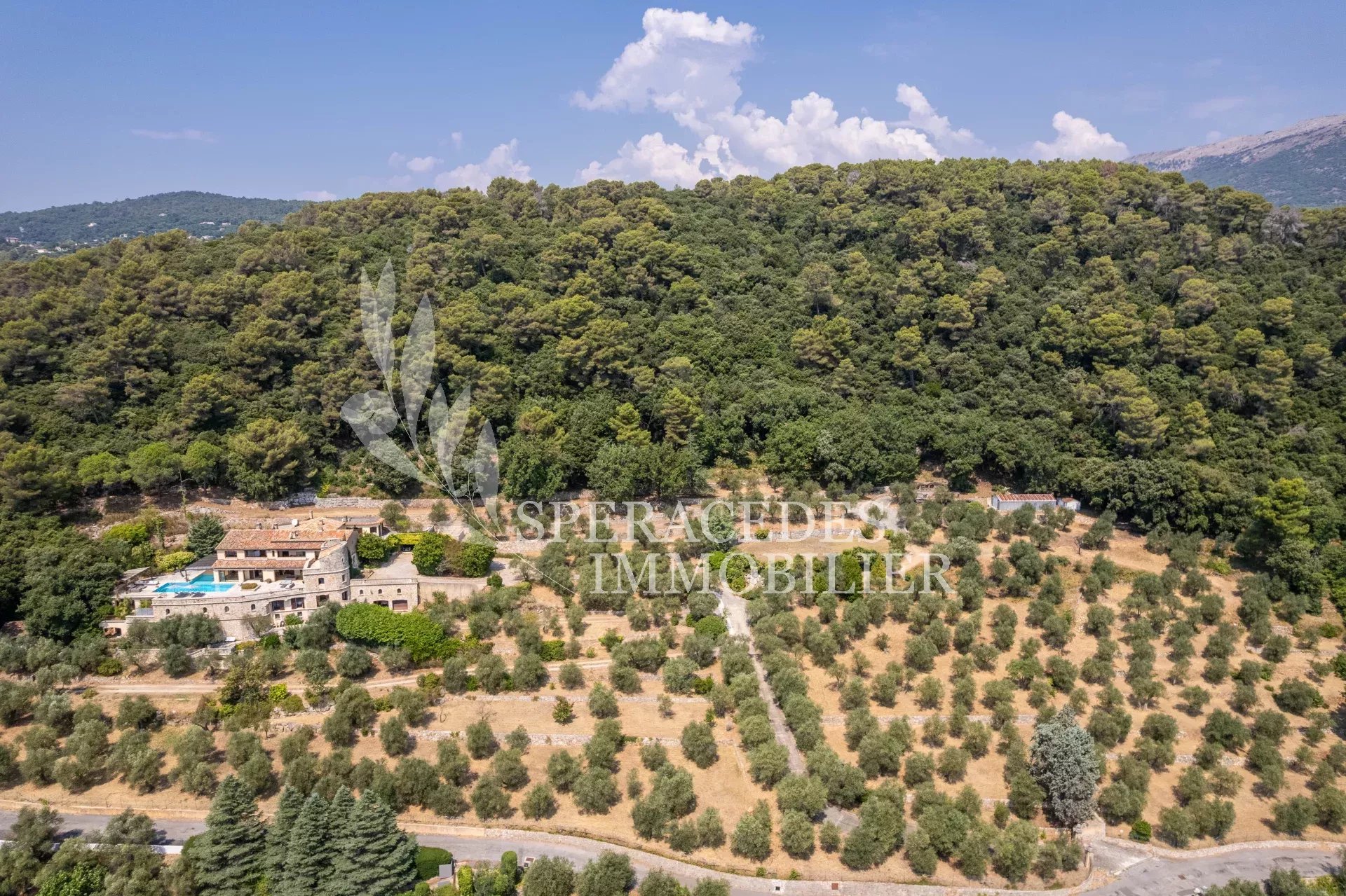 Perchée sur les collines de Grasse, à quelques minutes du village de Cabris, cette propriété d’exception de plus de 900 m² domine un panorama à couper le souffle sur la Méditerranée, la ville de Grasse et les îles de Lérins. Nichée au cœur de plus de trois hectares en restanques, agrémentés d’une oliveraie centenaire, elle allie prestige, charme authentique et histoire. La demeure principale propose cinq suites et trois appartements indépendants. Les vastes espaces de réception intérieurs, complétés par les terrasses et la piscine avec pool house, offrent un cadre d’exception. Les annexes comprennent une maison de gardien, deux studios, un héliport, deux carports et un double garage, ainsi que de nombreuses dépendances et pièces de service. De plus, la propriété comprend un vaste sous-sol aménageable. Rare sur le marché, ce domaine est un véritable havre de paix et de prestige. Dossier complet disponible sur demande.