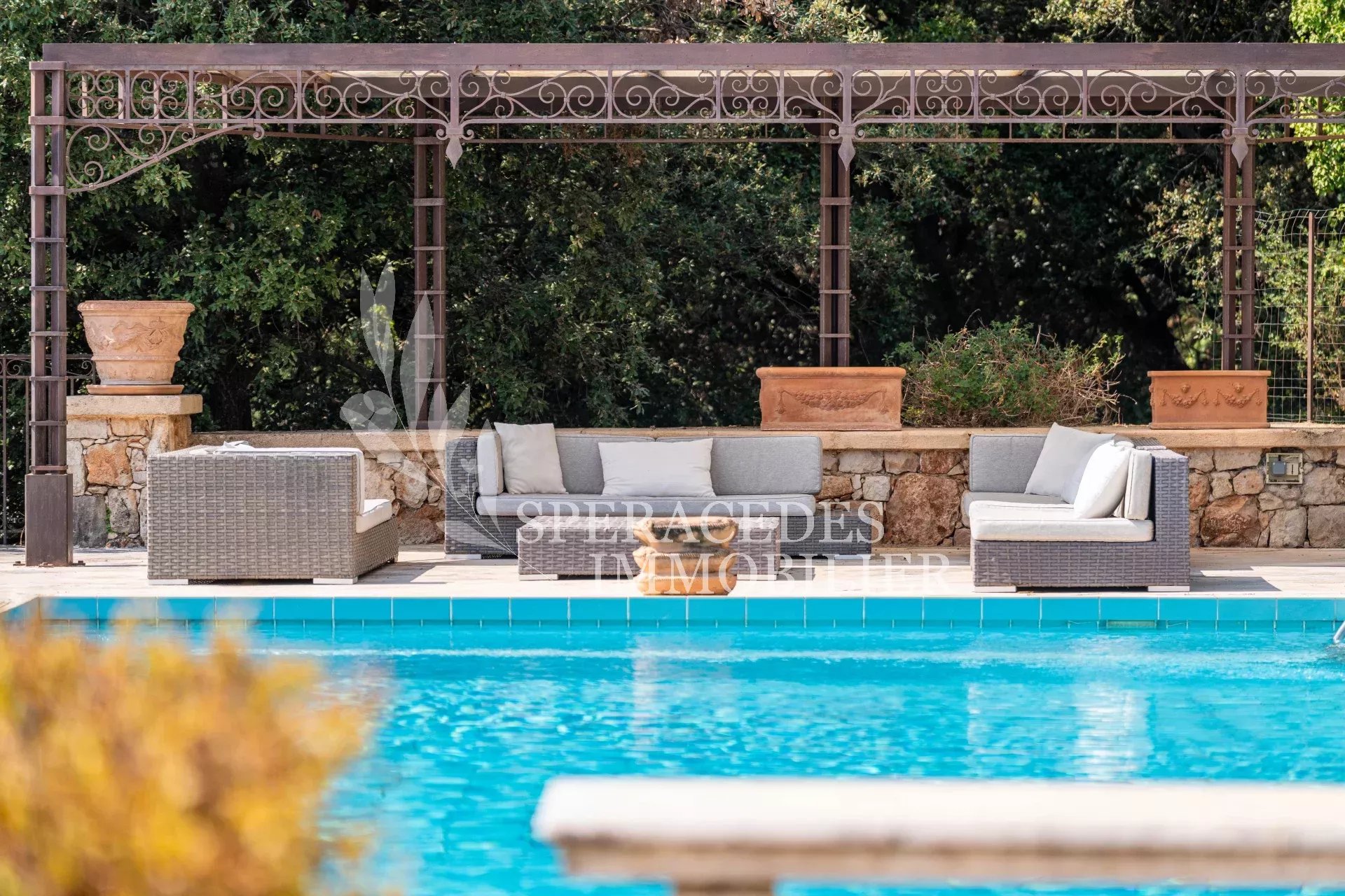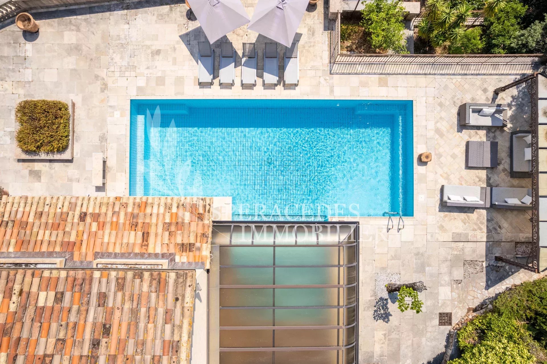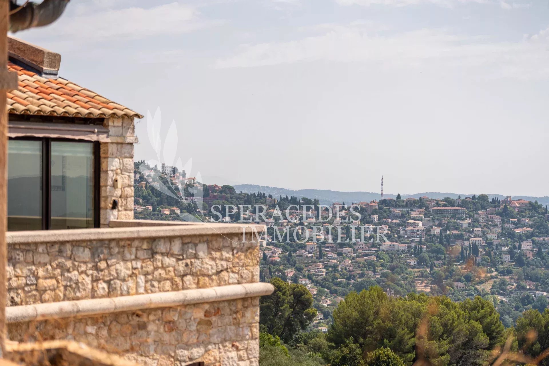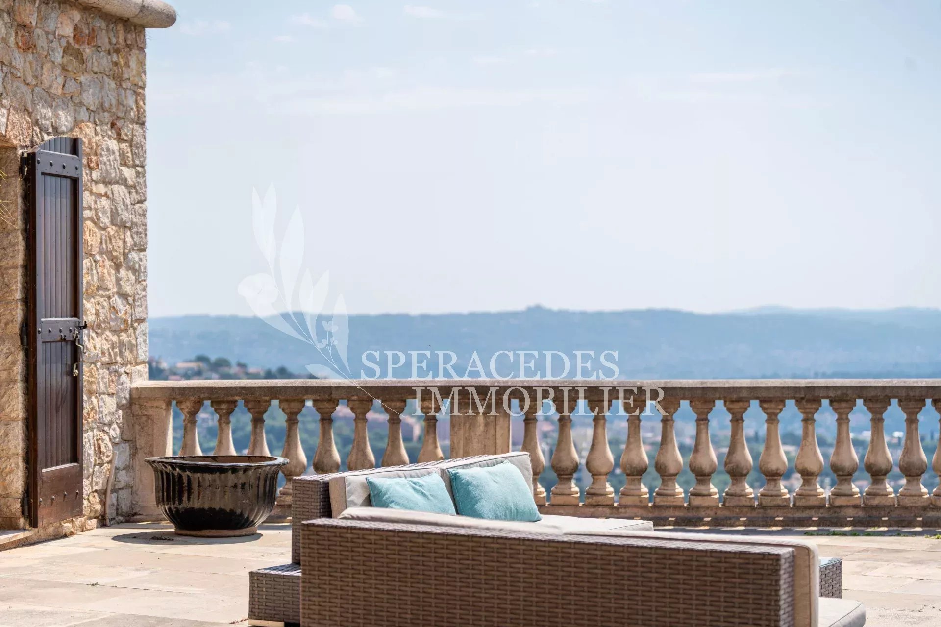 Perchée sur les collines de Grasse, à quelques minutes du village de Cabris, cette propriété d’exception de plus de 900 m² domine un panorama à couper le souffle sur la Méditerranée, la ville de Grasse et les îles de Lérins. Nichée au cœur de plus de trois hectares en restanques, agrémentés d’une oliveraie centenaire, elle allie prestige, charme authentique et histoire. La demeure principale propose cinq suites et trois appartements indépendants. Les vastes espaces de réception intérieurs, complétés par les terrasses et la piscine avec pool house, offrent un cadre d’exception. Les annexes comprennent une maison de gardien, deux studios, un héliport, deux carports et un double garage, ainsi que de nombreuses dépendances et pièces de service. De plus, la propriété comprend un vaste sous-sol aménageable. Rare sur le marché, ce domaine est un véritable havre de paix et de prestige. Dossier complet disponible sur demande.
