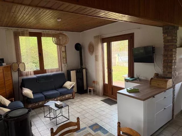 Maison de plain-pied sur un terrain de 370m2 comprenant : un séjour avec cuisine ouverte, 3 chambres, une salle de douche et un toilette séparé. Un garage et une dépendance pouvant être utilisée en studio.