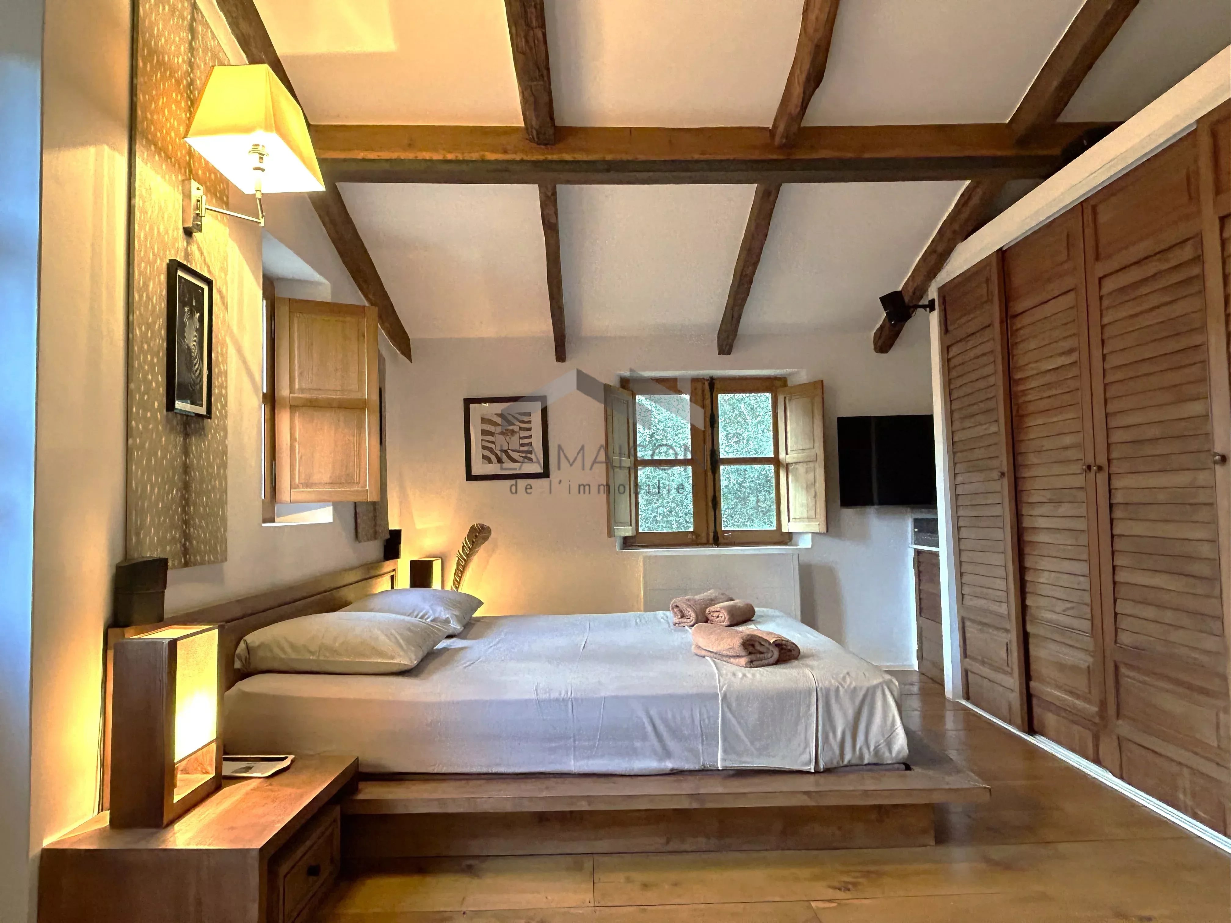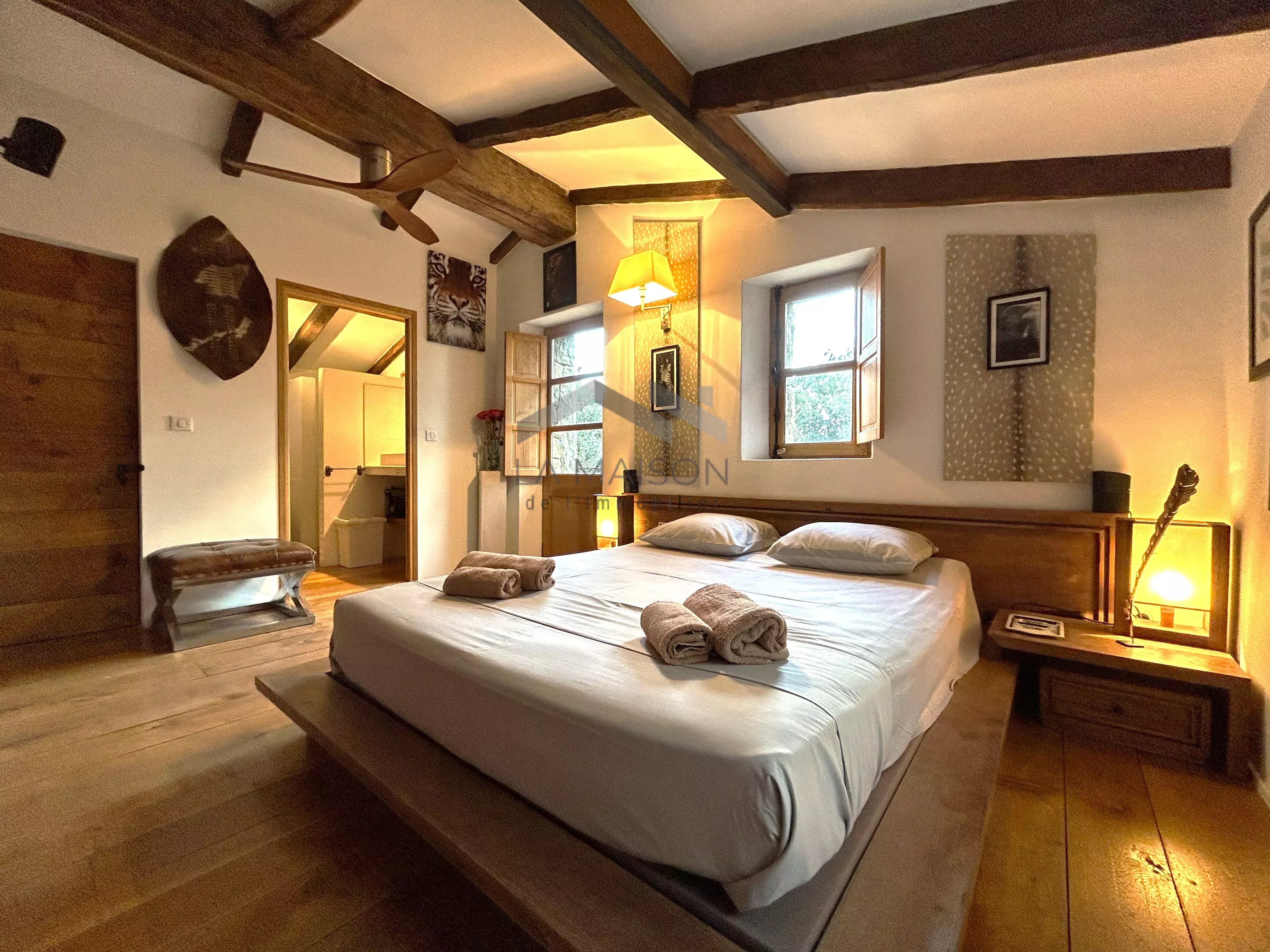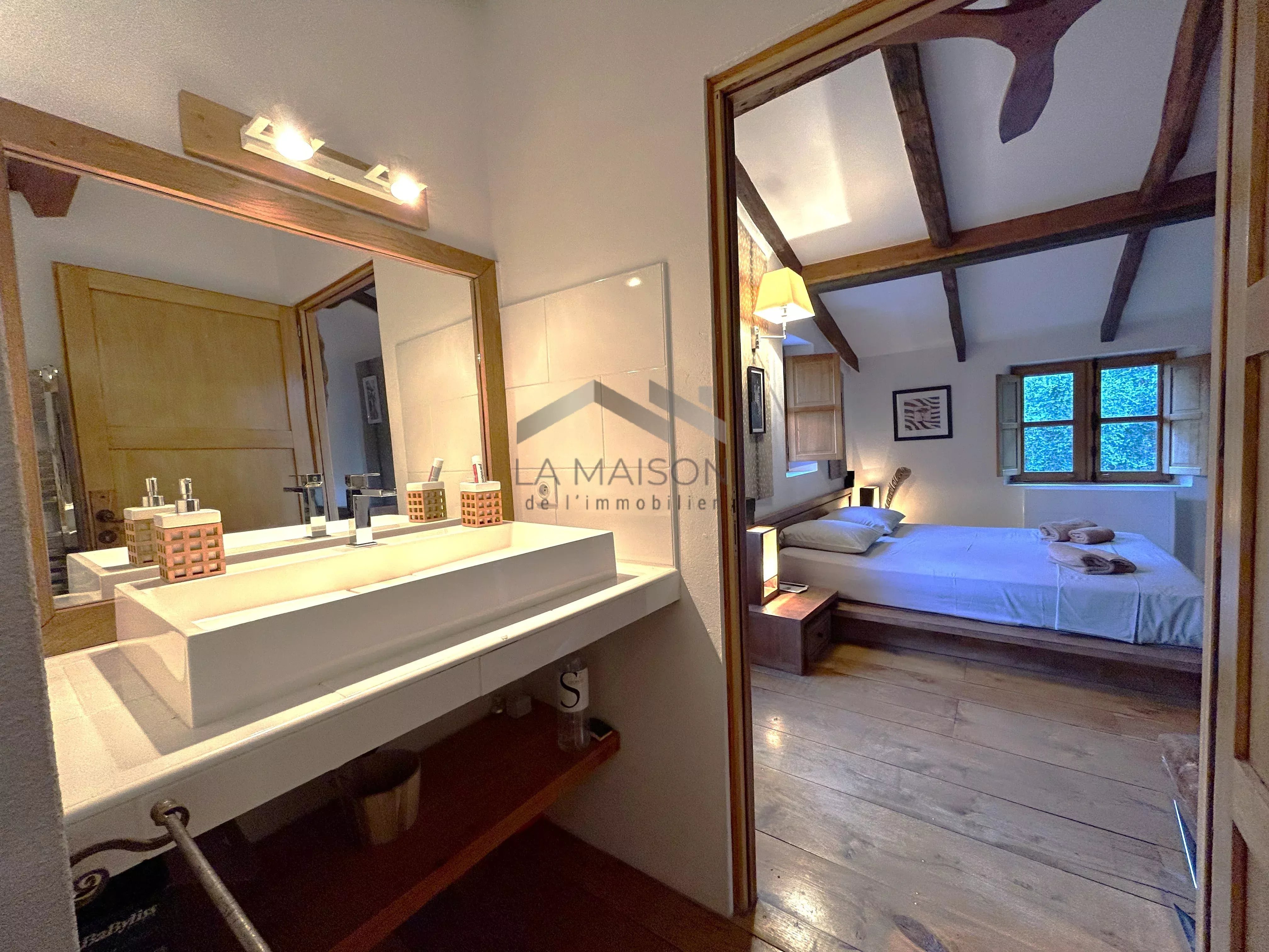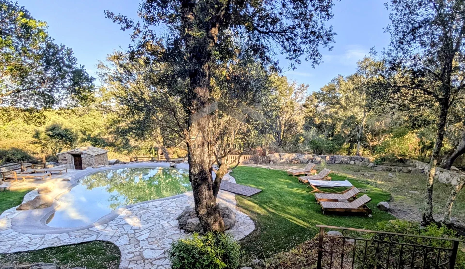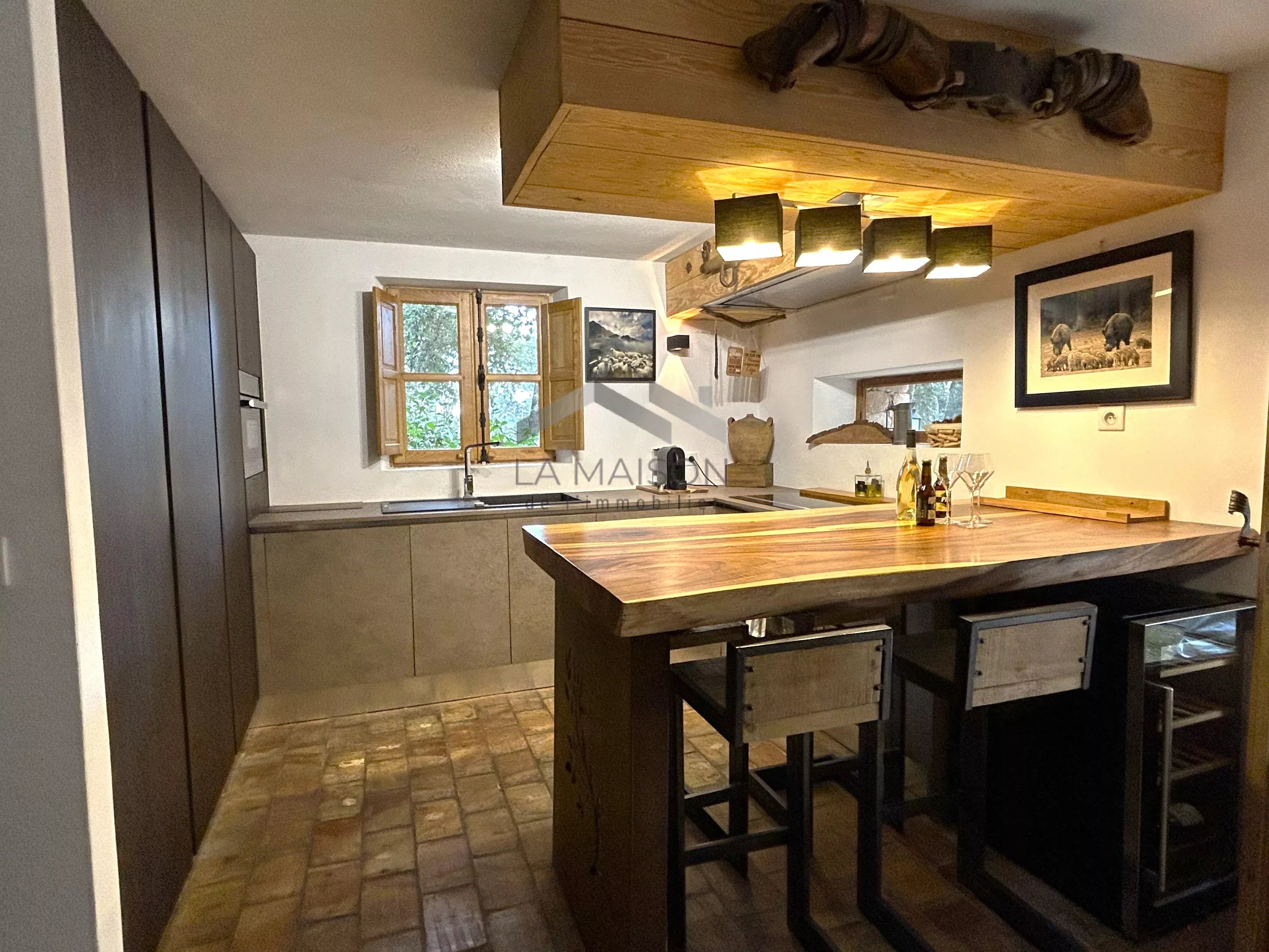 Située au cœur du village de Sotta, cette charmante villa de type bergerie allie avec élégance authenticité et confort moderne, dans un environnement privilégié à proximité immédiate de toutes les commodités. Édifiée sur deux niveaux et développant une surface habitable d’environ 103 m², cette maison neuve de type T5 séduit par son architecture traditionnelle sublimée par un parement en pierre du pays, lui conférant un cachet unique. Dès l’entrée, le rez-de-chaussée dévoile un vaste séjour baigné de lumière, ouvert sur une cuisine conviviale et un espace salle à manger idéal pour partager des moments en famille ou entre amis. Une buanderie ainsi qu’un WC indépendant viennent compléter ce niveau fonctionnel et agréable à vivre. La maison bénéficie d’une climatisation partielle, assurant un confort optimal en toute saison. À l’étage, l’espace nuit se compose d’une chambre parentale avec lit double et salle d’eau avec WC, ainsi que de deux autres chambres, chacune équipée d’un lit double, accompagnées d’une seconde salle d’eau avec WC. L’agencement a été pensé pour offrir confort et intimité à chaque occupant. Implantée au sein d’un hameau typique, la propriété profite d’un cadre paisible avec une vue dégagée et sans vis-à-vis, à seulement 15 minutes de Porto-Vecchio et à 20 minutes des plus belles plages de l’extrême sud de la Corse. À l’extérieur, le terrain arboré propose plusieurs espaces aménagés propices à la détente. Le véritable atout de cette propriété réside dans sa magnifique piscine avec plage immergée, un espace de vie supplémentaire qui ravira petits et grands. Un bien rare sur le secteur de Sotta, idéal en résidence principale, secondaire ou investissement locatif, offrant un cadre de vie recherché entre mer et nature.
