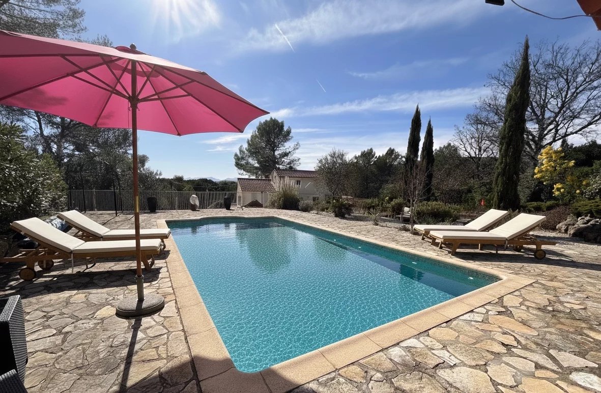 MAISON - COTIGNAC, entre les Gorges du Verdon et la Côte-d'Azur, au pied d'une impressionnante falaise de tuf, vous aurez le privilège de devenir propriétaire d’une jolie maison provençale aux portes d’un village de caractère unique aux façades colorées certifié Plus Beau Village de France depuis 2022. A proximité du village et de l’ensemble des commodités, cette agréable maison est implantée au cœur d’un terrain de 1 564 m² planté de nombreuses essences méditerranéennes. Sans vis à vis, au calme d’une impasse, elle offre une vue panoramique sur la campagne environnante. Pour vous détendre le jardin est agrémenté d’une jolie piscine (10 x 5 m) avec de larges plages dallées et une cuisine d’été. Au rez-de-chaussée : entrée, confortable salon / salle à manger avec une cheminée à insert, spacieuse cuisine entièrement équipée, agréable terrasse ombragée, 1 chambre, salle d’eau avec wc. A l’étage : dégagement aménagé en espace bureau, 1 chambre avec salle d’eau privative et wc. En rez-de-jardin (possibilité d’appartement indépendant) : entrée, 1 chambre spacieuse avec dressing, salle d’eau privative avec wc, une autre chambre avec cabinet de toilette. Garage attenant, abri jardin. Avec des panneaux photovoltaïques la maison est peu énergivore (40% d’économie d’énergie). Climatisation réversible, fosse septique aux normes. Située dans un quartier résidentiel recherché, bénéficiant d’une exposition idéale, la maison est lumineuse et agréable à vivre. En excellent état général, les dimensions sont généreuses et les volumes harmonieux. De part son agencement elle offre de nombreuses possibilité (gîte, bureau ou cabinet profession libérale, logement pour un parent âgé…) Excellent rapport locatif saisonnier possible. Coup de cœur assuré, en résidence principale ou secondaire. Les informations sur les risques auxquels ce bien est exposé sont disponibles sur le site Géorisques : georisques.gouv.fr