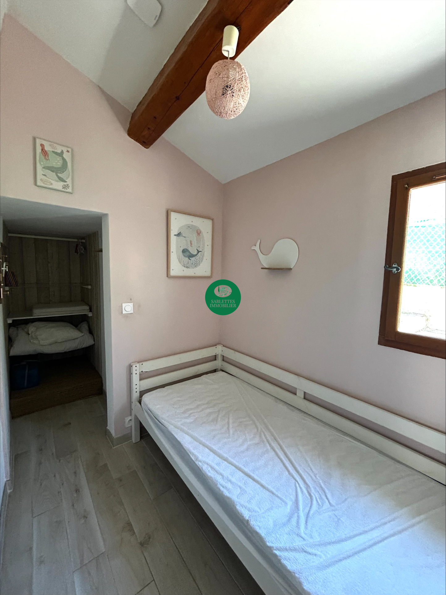 L'agence sablettes Immobilier vous propose à la location une maison meublée de 70 m2 avec un beau jardin , dans le merveilleux quartier de fabregas à deux pas de la plage , elle se compose d'un séjour, cuisine aménagée et équipée, 2 chambres et une chambrette , salle d'eau, wc buanderie, dans la cour possibilité de stationner 3 voitures