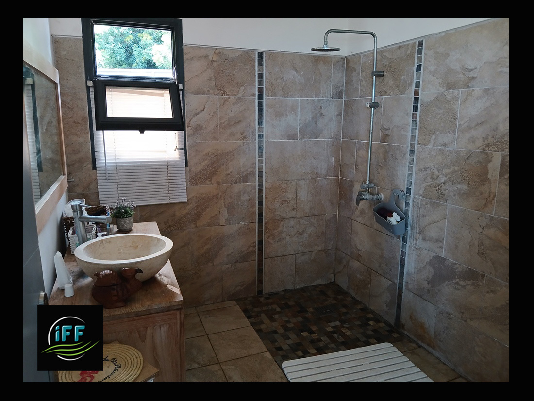 Il est composé d'un séjour, une cuisine ouverte aménagée et équipée (plaque de cuisson mixte et hotte), 3 chambres avec rangements, une salle d'eau avec une grande douche à l'italienne, 1 wc indépendant.