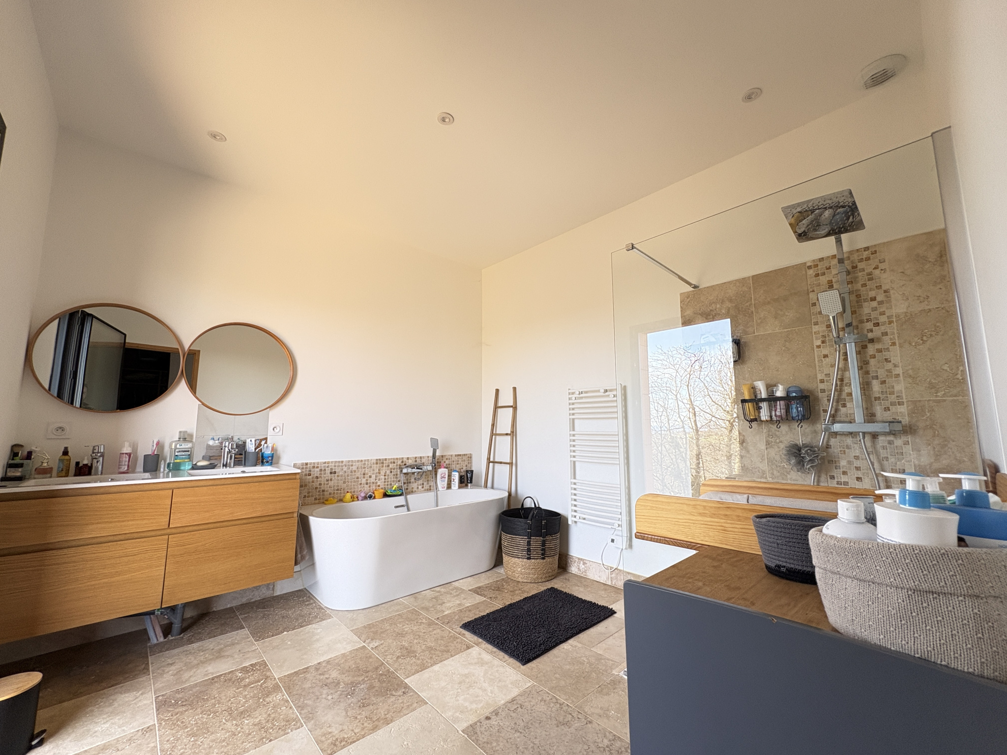 - Beaux matériaux et belles prestations : sols et salle d'eau en travertin, cuisine équipée, dressing...