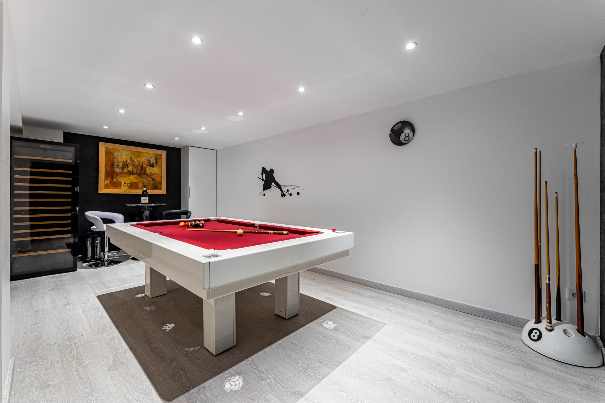 Au rez de chausée une vaste entrée avec de nombreux rangements vous accueille et dessert un espace de vie de plus de 65m2 composé d'une cuisine ouverte entièrement équipée haut de gamme, d'une vaste pièce pouvant être aménagée en espace de jeux, salon de réception, et d'un espace supplémentaire pouvant accueilir un grand bureau, le tout ouvre sur une immense terrasse avec vue imprenable et une belle pisicine. Une chambre parentale avec sa salle de bain, un immense dressing, une salle de billard et une grande buanderie complètent ce niveau. L'étage supérieur se compose quant à lui, d'un espace de vie composée d'une cuisine et salon avec coin cheminée, ouvrant sur une autre belle terrasse avec vue, de deux grandes chambres avec placards, d'une belle salle d'eau, et d'une deuxième chambre parentale avec sa salle d'eau privative.