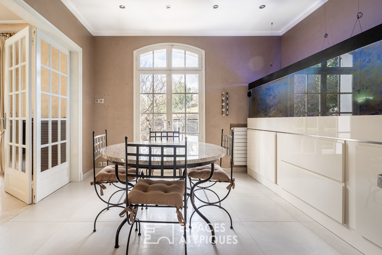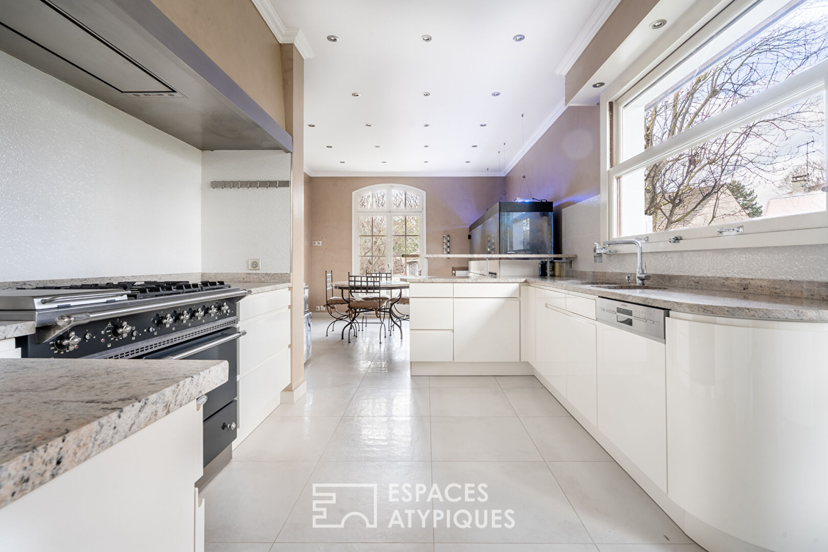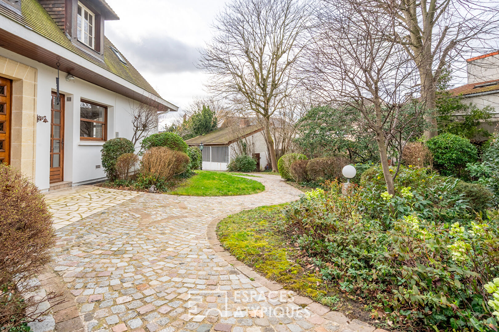 Au sein d'une parcelle aux dimensions exceptionnelles se dévoile une propriété familiale singulière à proximité du Canal de l'Ourcq, pensée comme un lieu de vie à part entière, où l'espace, la nature et la modularité dialoguent librement. Cette propriété développe 232 m² habitables au coeur d'un terrain paysager de 2 286 m², une configuration rare qui évoque davantage une maison de campagne qu'un pavillon urbain. Ici, le temps semble ralentir, porté par la profondeur du jardin et les volumes généreux. L'intérieur révèle une architecture fonctionnelle et fluide, conçue pour accompagner les usages d'une vie de famille contemporaine. Le séjour traversant, structuré autour du salon et de la salle à manger, bénéficie d'une lumière naturelle omniprésente et compose un espace de réception chaleureux, propice aux moments de partage. La cuisine, volontairement modulable, peut rester indépendante ou s'ouvrir selon les envies, prolongeant l'idée d'un lieu évolutif, jamais figé. Les six chambres, réparties de manière équilibrée, offrent des espaces de repos préservés, à distance des zones de vie. Plusieurs pièces intermédiaires laissent place à l'imaginaire : bureau inspirant, atelier créatif, salle de jeux ou espace professionnel, autant de possibilités qui soulignent le caractère adaptable et hors norme de la maison. Un sous-sol total, structuré et fonctionnel, complète l'ensemble. Il accueille un atelier, un dressing saisonnier, une buanderie, ainsi qu'un garage permettant le stationnement de trois véhicules. L'ensemble est relié aux niveaux principaux par un monte-charge desservant le rez-de-chaussée et l'étage, offrant un confort d'usage rare et une vraie fluidité au quotidien. A l'extérieur, le jardin s'apparente à un véritable parc privé. Les perspectives se succèdent, entre zones arborées ensoleillées et espaces à inventer. La présence d'une serre, rare et poétique, renforce le lien au végétal et offre un espace hors du temps, dédié à la culture, à la création ou simplement à la contemplation. En fond de parcelle, une dépendance d'environ 50 m² enrichit la propriété. Sous celle-ci se dévoile un espace inattendu : une cave voûtée entièrement restaurée, pensée comme un lieu de réception confidentiel. Aménagée avec un bar, elle se prête aux moments de dégustation, aux soirées privées ou aux instants partagés dans une atmosphère intimiste. Un espace à part, discret et singulier, véritable signature du lieu. Située dans un environnement résidentiel calme, à proximité des commodités, cette propriété conjugue intimité, volume et liberté d'usage, des qualités devenues précieuses sur le marché francilien. Aéroport Roissy CDG : à 14 Km RER B Gare d'Aulnay-Sous-Bois : à 3 Km T4 (Station L'Abbaye) : à 2 minutes à pied Bus 605, 613 : à 5 minutes à pied CLASSE ENERGIE : E / CLASSE CLIMAT : E Montant moyen estimé des dépenses annuelles d'énergie pour un usage standard, prix moyens des énergies indexés au 1er janvier 2021 : entre 4 050 euros et 5 530 euros (abonnement compris) Les informations sur les risques auxquels ce bien est exposé sont disponibles sur le site Géorisques : https://www.georisques.gouv.fr Contact : Frédéric GROULT EI - 06 09 32 90 87 RSAC : 899 150 254 Bobigny Frédéric GROULT (EI) Agent Commercial - Numéro RSAC : 899 150 254 - BOBIGNY.