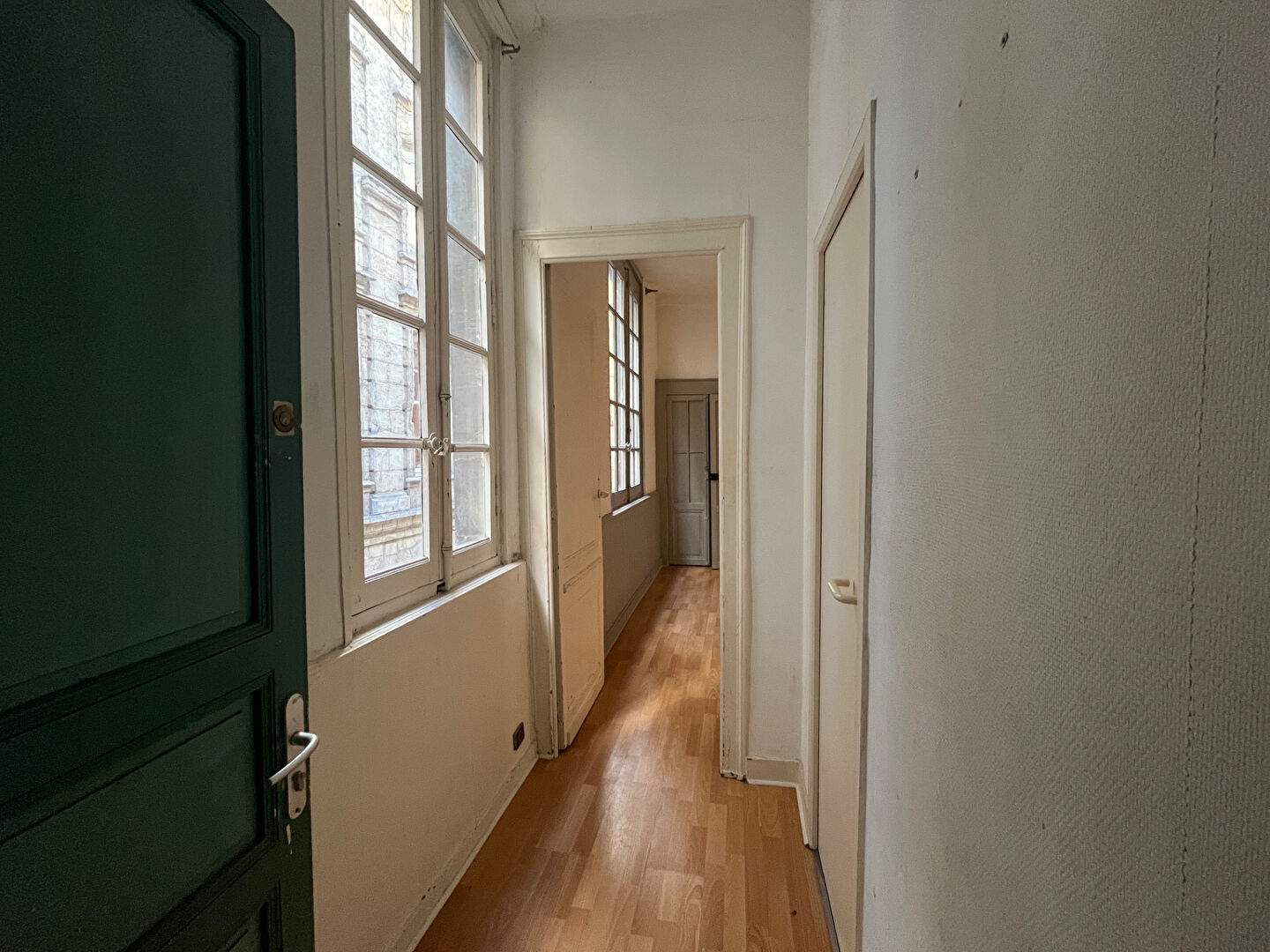 Appartement basé à Bordeaux quartier Camille Julian/place du parlement, au calme dans une petite rue du vieux Bordeaux, peu empruntée par les voitures. La copropriété est composée de 8 lots (dont 5 d'habitations), un syndic bénévole gère les biens. L'appartement est situé au premier étage sur 3 avec une double orientation par grandes fenêtres permettant de la clareté même par jour de pluie. D'une surface d'environ 58 m2, il comprend une entrée, des WC indépendants, une belle pièce de vie d'environ 20 m2, une chambre de 17 m2, un bureau de 8 m2, une salle de bain avec branchement machine à laver, une petite cuisine avec branchement lave vaisselle. Quelques travaux seront à prévoir pour optimiser la performance énergétique du bien. Tram A/F à 5 minutes à pied place du palais, Tram B à 7 minutes à pied Grand théatre, Tram ACDEF à 7 minutes à pied Porte de Bourgogne. Tous les commerces de la place Camille Julian, Place du Parlement, Place Fernand Lafargue, Rue Sainte Catherine. Promenade sur les quais, Place des Quinconces et Grand Théatre à 7 minutes à pied. Jardin Public à 15 minutes. Copropriété de 8 lots - dont 5 lots habitation. Charges annuelles : 400 euros.