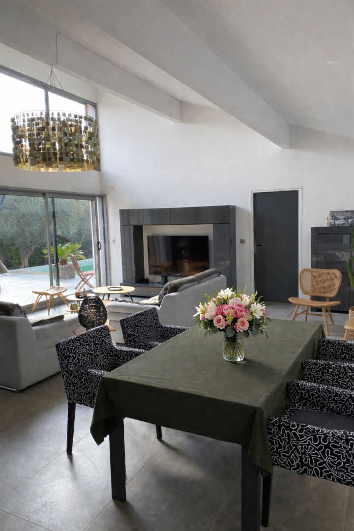 Notre agence immobilière de Saint Rémy de Provence "TYX IMMOBILIER CONFIDENTIEL" vous propose dans le village de Maussane Les Alpilles un véritable havre de paix à 5 mn à pied du centre village. Une douceur de vivre dans cette villa de plain pied 130 m2 où les pièces s'organisent autour des terrasses, du jardin, de la piscine. L'entrée distribue l'organisation de la villa : - à droite un premier côté nuit avec 2 chambres et salle de douche à l'italienne , wc indépendant. - à gauche une pièce à vivre lumineuse de 53 m2 (plafond cathédrale, baies vitrées, cuisine équipée, arrière cuisine) ) puis vous découvrirez la suite parentale de 33 m2 , ouvrant sur terrasse. Villa entièrement climatisée - A l'extérieur plusieurs lieux de vie autour de la piscine (7x4 ) équipée d'un volet roulant - Bar piscine - WC - Carport voitures - Interphone/Portail motorisé 9 km d'Arles - 1 heure Aéroport Marseille Marignan - 35 mn gare Avignon TGV DPE B / Gaz à effet de serre A Prix : 897 000 euros (honoraires agence inclus) CONTACT VISITE 07 71 16 88 62