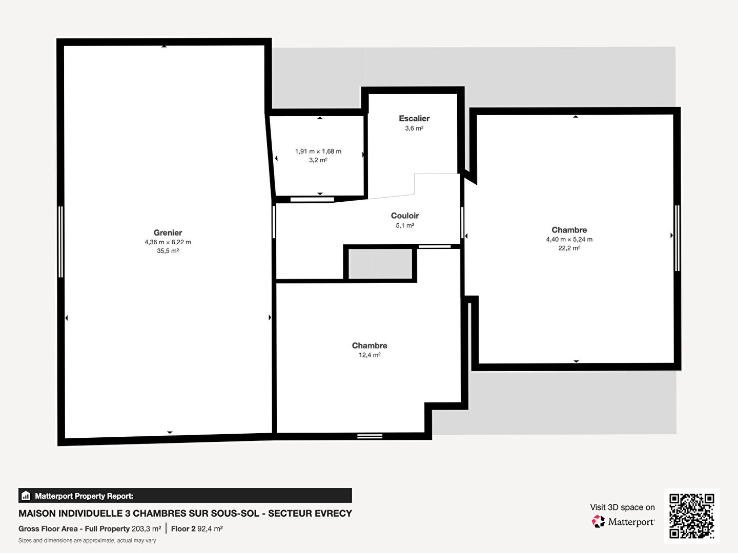 MAISON INDIVIDUELLE 3 CHAMBRES SUR SOUS-SOL - SECTEUR EVRECY Rue du Particulier vous propose à la vente cette charmante maison individuelle de plain-pied, offrant une surface habitable de 139 m², implantée sur un terrain de 1 152 m², dans un environnement très calme, à égale distance (8 kms) du centre d'Évrecy et du centre de Villers-Bocage. La maison s'ouvre sur une véranda d'entrée menant à un couloir avec rangements, lequel dessert une cuisine indépendante, un spacieux double séjour d'environ 50 m² agrémenté d'une cheminée, ainsi qu'une salle de bain et un WC indépendant. Depuis le salon, vous accédez directement à une agréable terrasse exposée sud-ouest, idéale pour profiter des beaux jours. A l'étage, l'espace nuit comprend deux chambres, un WC indépendant, ainsi qu'un grenier aménageable, offrant un potentiel d'aménagement supplémentaire. La maison bénéficie également d'un sous-sol complet, apportant de nombreuses possibilités de stockage ou d'aménagement. Chauffage au fuel Huisseries en double vitrage bois équipées de volets roulants en PVC. Assainissement individuel. Taxe foncière : 813 euros DPE effectué en 2025 : Montant estimé des dépenses annuelles d'énergie pour un usage standard : entre 3970 euros et 5420 euros. Prix moyens des énergies indexés au 01/01/2021 (abonnements compris). DPE : E / GES : E. Consommation énergie primaire : 225 kWh/m²/an. Prix moyens des énergies indexés sur les années 2021, 2022 et 2023 (abonnements compris). Les informations sur les risques auxquels ce bien est exposé sont disponibles sur le site Géorisques : https://www.georisques.gouv.fr/ Les honoraires sont à la charge du vendeur.