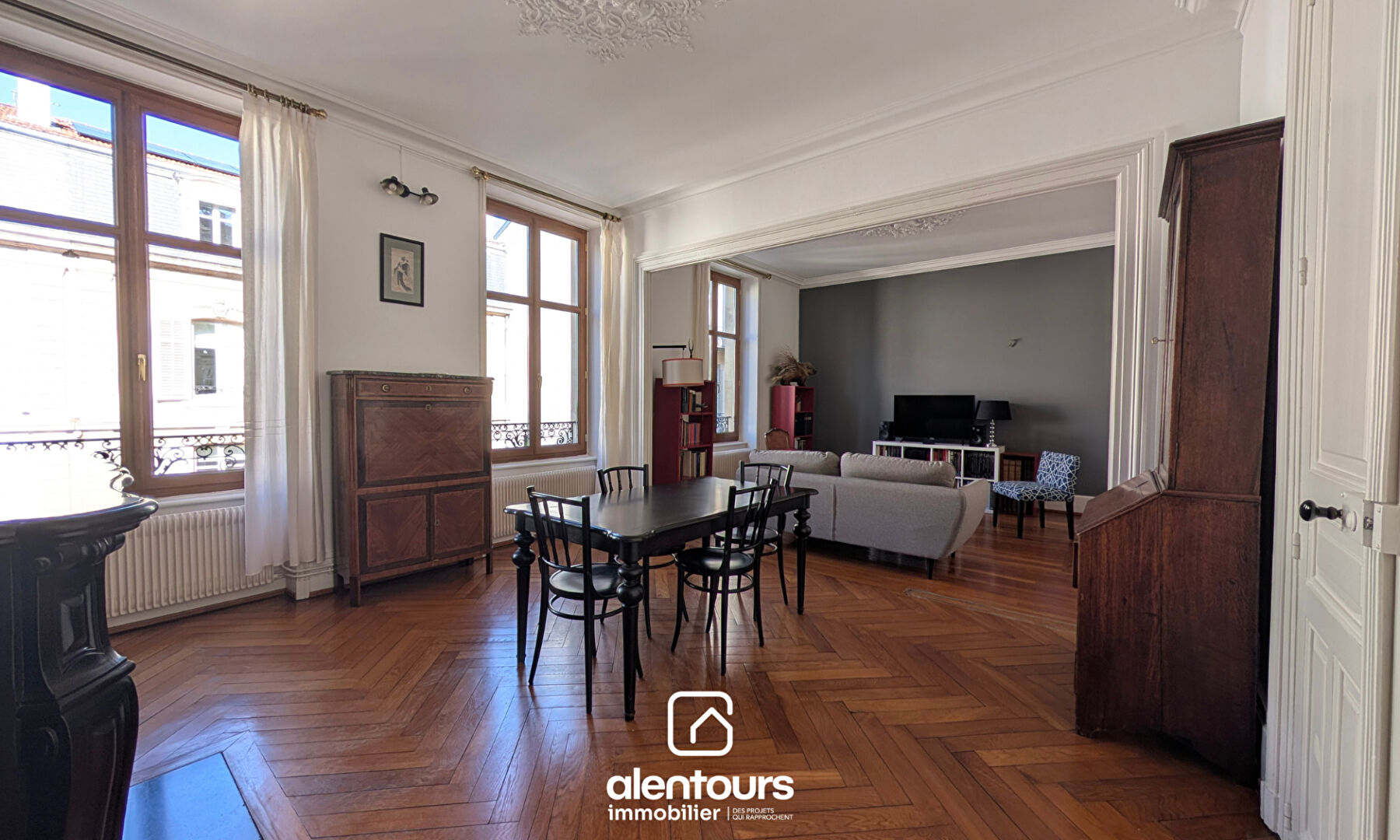 NANCY CENTRE , APPARTEMENT DE CARACTÈRE 106 m² , 3 CHAMBRES ET CAVES Nancy, 2 pas de la gare, rue de Lorraine, entre la Faculté de Lettres et la Faculté de Droit, découvrez un appartement rare, alliant cachet de l'ancien, volumes généreux et adresse privilégiée. Situé au 1er étage d'une élégante copropriété parfaitement entretenue, ce bien traversant de 106 m² offre une atmosphère lumineuse et raffinée, sublimée par une hauteur sous plafond de plus de 3 mètres et une double exposition, côté rue et côté cour paysagère. Dès l'entrée, le charme opère. Le salon-séjour d'environ 35 m² dévoile de magnifiques proportions, idéales pour recevoir. L'espace nuit se compose de trois belles chambres (12 m², 15,5 m² et près de 20 m²) dont 2 avec placards intégrés, offrant confort et charmes. La cuisine est fonctionnelle, la présence de nombreux rangement facilite l'aménagement, la salle d'eau soignée et équipée d'une VMC. Le chauffage individuel au gaz est assuré par une chaudière récente produisant également l'eau chaude, garantissant un confort maîtrisé. Deux caves privatives complètent ce bien ; un privilège rare en centre-ville. Les atouts majeurs : - Emplacement central et recherché - Nombreux placards et rangement - Volumes élégants et hauteur sous plafond remarquable - Appartement traversant et lumineux - Copropriété de standing - Charges maîtrisées - Potentiel de valorisation Taxe foncière : 1 300 euros Consommation énergétique annuelle (gaz + électricité) : env. 1 600 euros / AN Charges annuelles de copro: 1500 euros Bien vendu sans stationnement ni extérieur Un appartement de caractère, idéal pour une clientèle en quête d'un cadre de vie élégant et central, ou pour un investissement patrimonial pérenne. Alentours Immo 30 boulevard de Scarpone 03.65.67.31.93 contact@alentours-immo.fr https://www.alentours-immo.fr/ RCS : 983 882 317 R.C.S. Nancy Carte professionnelle mention PRO TRANSACTION n° CPI54012024000000004, le 06/02/2024 par CCI de Meurthe-et-Moselle, 53 Rue Stanislas, 54000 Nancy Assurance responsabilité civile professionnelle auprès de GALIAN, 89 Rue La Boétie, 75008 Paris, n° 172895E Copropriété de 13 lots - dont 4 lots habitation. Charges annuelles : 1500 euros.