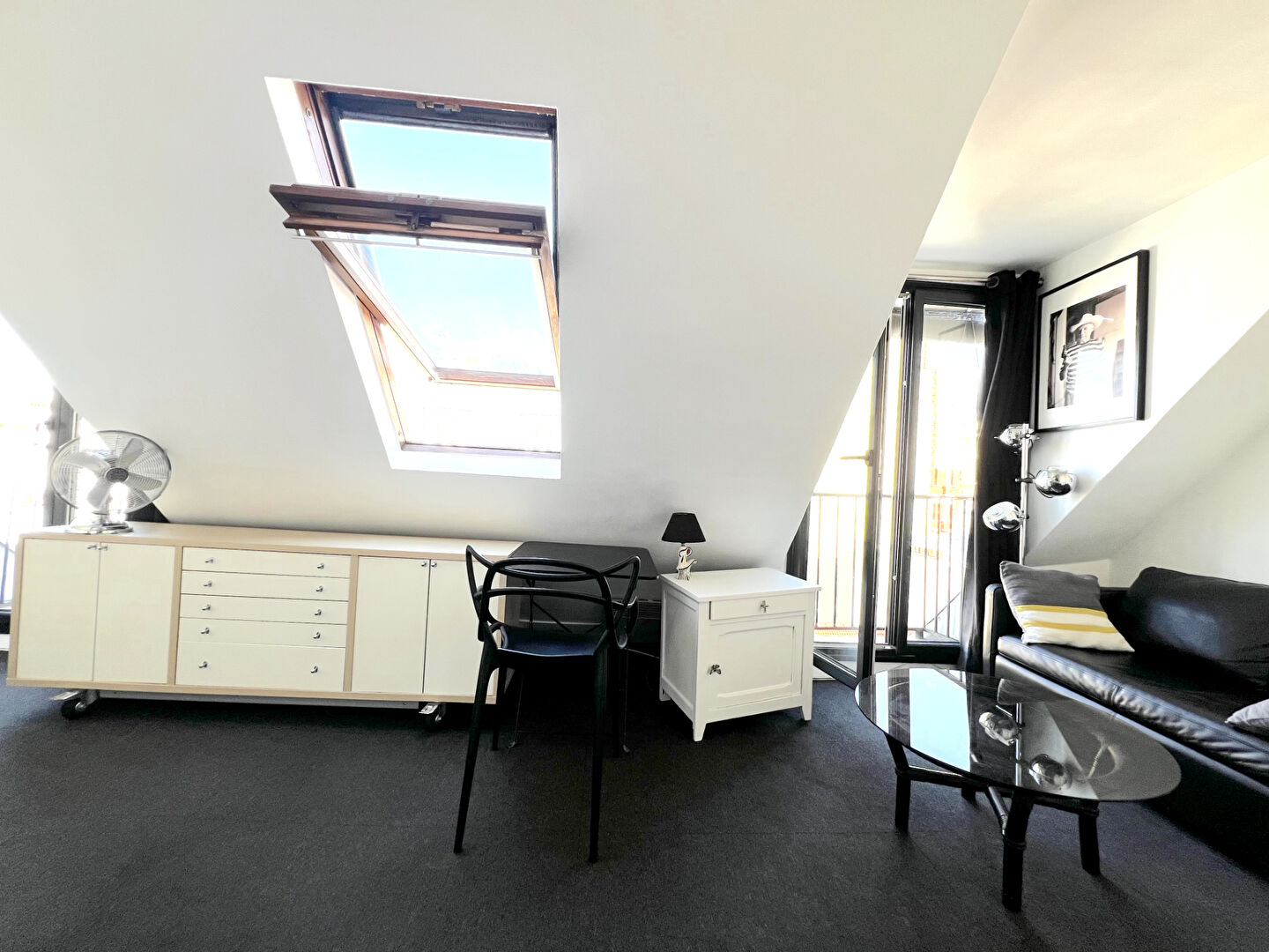 Paris 7ème - M° Ecole Militaire - Dans le très recherché quartier du Gros-Caillou proche du Champs de Mars, en plein coeur de la rue Cler, dans la partie piétonne très animée, LA SIGNATURE vous propose ce charmant studio au 6ème et dernier étage sous les combles, de 27,11m2 au sol, 18,80m2 LC avec 2 balconnets, totalisant une superficie pondérée de 24m2. Exposé Est avec une belle vue dégagée sur les toits de Paris, 2 grandes fenêtres avec balconnet et un velux, il est baigné de soleil et reste très lumineux en fin d'après-midi. Il est composé d'une entrée desservant la pièce à vivre avec un espace nuit, une cuisine US, une salle de bains avec WC et buanderie, une cave de 7m2. Une pépite à visiter très vite! (3.40 % honoraires TTC à la charge de l'acquéreur.) Copropriété de 117 lots - dont 54 lots habitation. Charges annuelles : 2148 euros. Véronique MULLER (EI) Agent Commercial - Numéro RSAC : - .