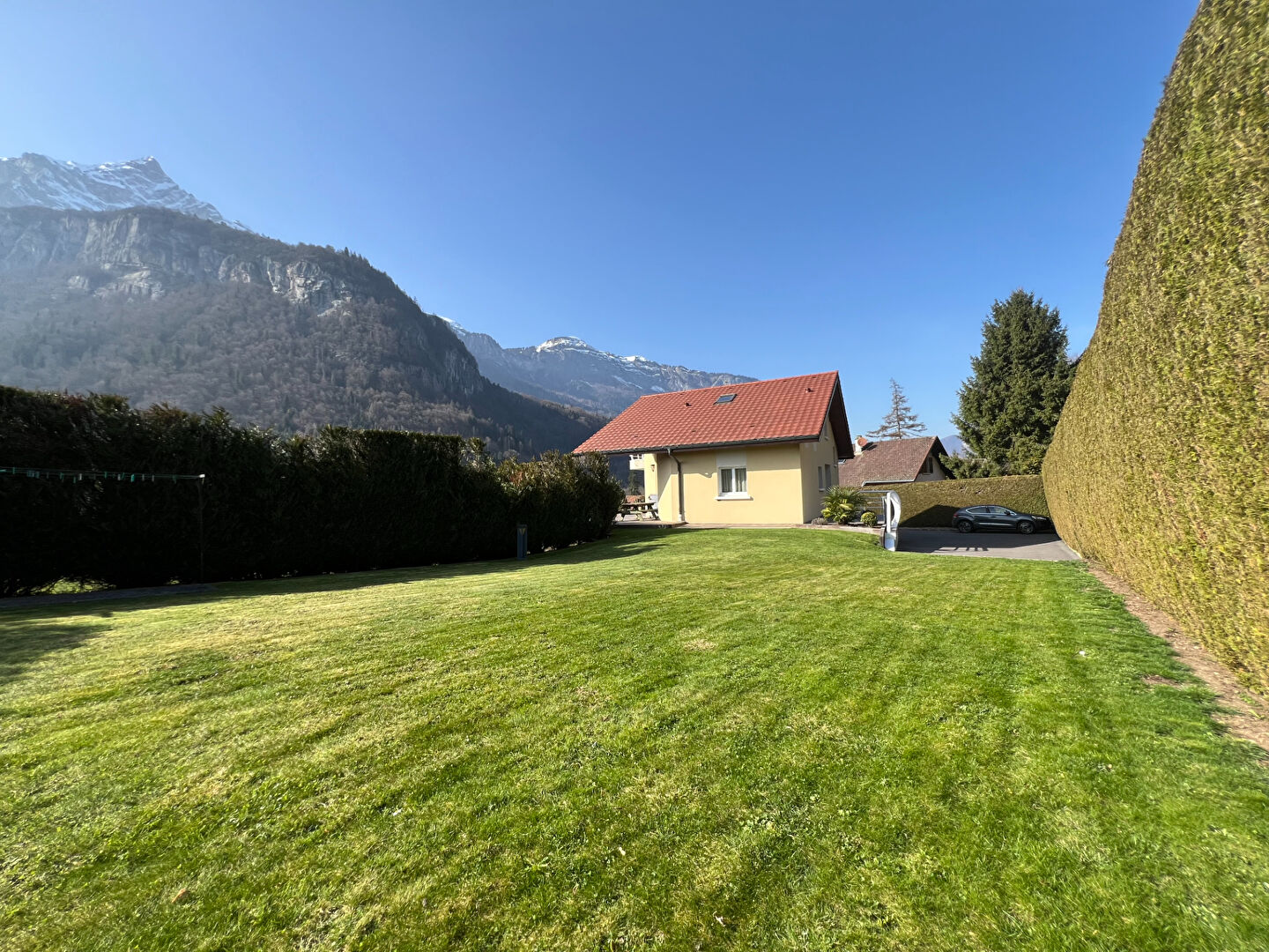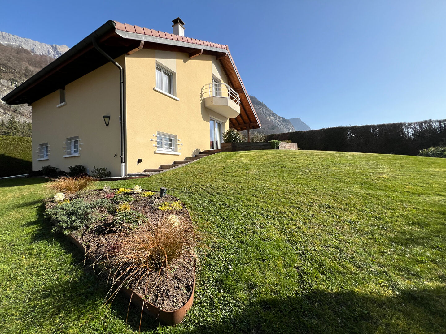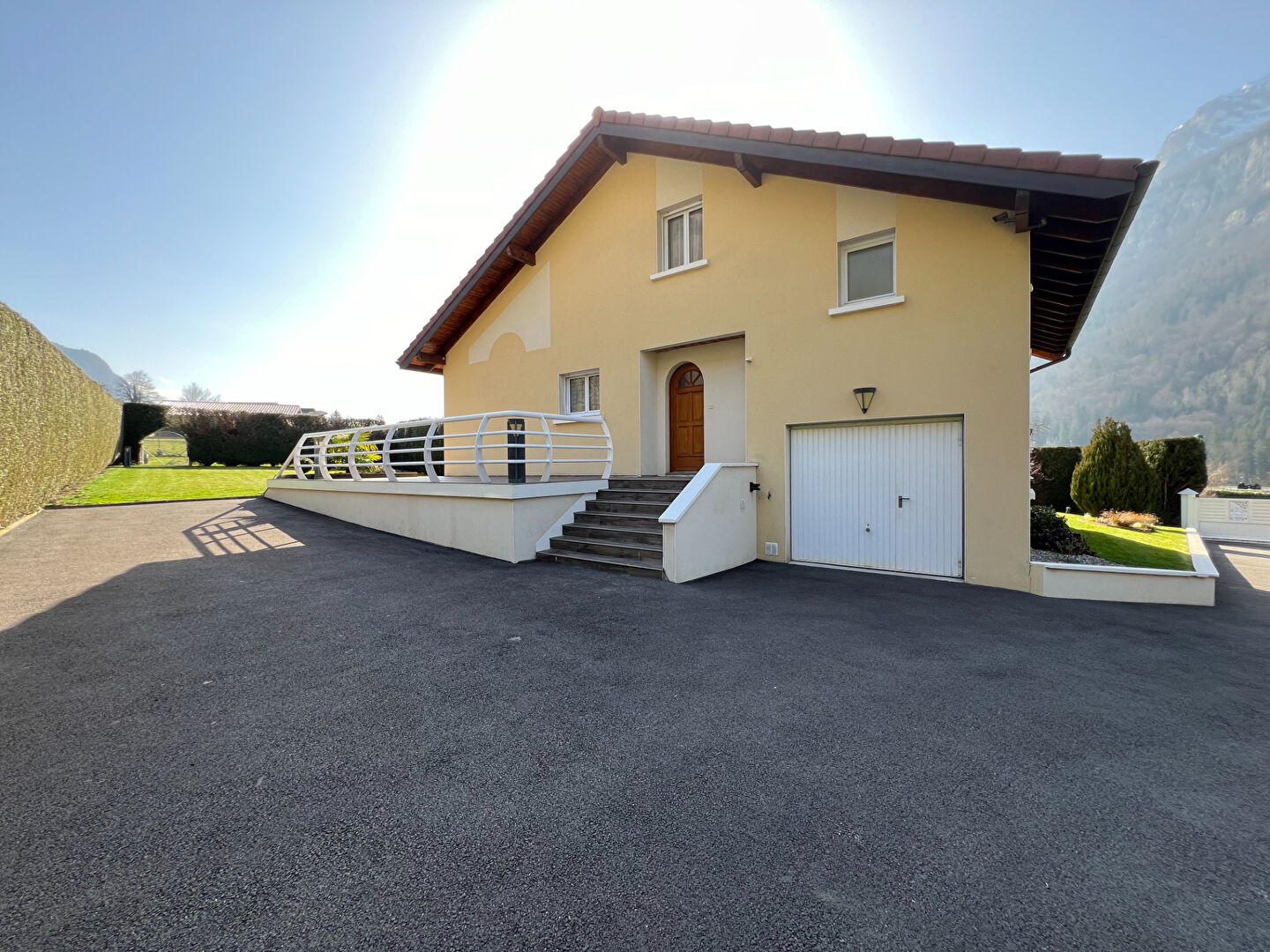 L'agence Actif immobilier vous propose à la vente une maison d'architecte édifiée en demi-niveau dans les règles de l'art, par des artisans locaux, en 1999.Elle est implantée sur 1385M² de terrain, entièrement clos et végété, dans le hameau d'Oëx, à deux minutes de l'entrée d'autoroute et de la zone commerciale de Sallanches Le secteur est ensoleillé et proche de la nature, vous pourrez ainsi profiter des extérieurs paysagées, régulièrement entretenus et de deux terrasses: d'une surface de 24m² au nord et 56m² au sud. L'accès est goudronné et sécurisé par un portail motorisé disposant d'un système visiophone. Cette construction de qualité vous offre un sous-sol complet avec caves, garage et buanderie en plus de 135M² habitables. Le premier demi-niveau propose un hall d'entrée, une cuisine semi ouverte sur un double séjour de 35M² dont la partie salle à manger offre une grande hauteur sous plafond. Le second demi niveau dispose d'une salle de bains (douche et baignoire), d'un WC séparé et d'une chambre. Puis au dernier demi niveau deux nouvelles chambres dont une avec dressing, et balcon. Chaque pièce dispose de rangements intégrés. Le bien est entretenu régulièrement par les propriétaires depuis le premier jour. Nous vous invitons à le découvrir nous contactant, mandat n°1170.