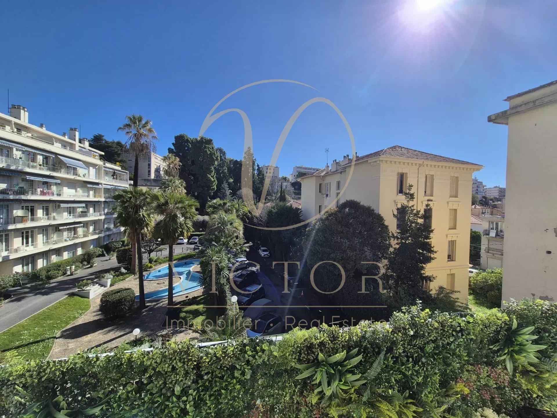 Dans une résidence des années 70 avec parc arboré. 3p de 47,10m² bien agencé et rénové avec balcon/terrasse au calme sur jardin de la copropriété. Appartement d'angle EST et SUD. Climatisation, double vitrage. Parking privatif extérieur en supplément, une cave complète ce bien. Proche de l'arrêt tramway Valrose. Photos réelles, aménagement avec IA. Honoraires charge vendeur - montant moyen de la quote-part de charges courantes 2280€/an 89 lots d'habitation. DPE: C GES: B les informations sur les risques auxquels ce bien est exposé sont disponibles sur le site Géorisques : georisques.gouv.fr