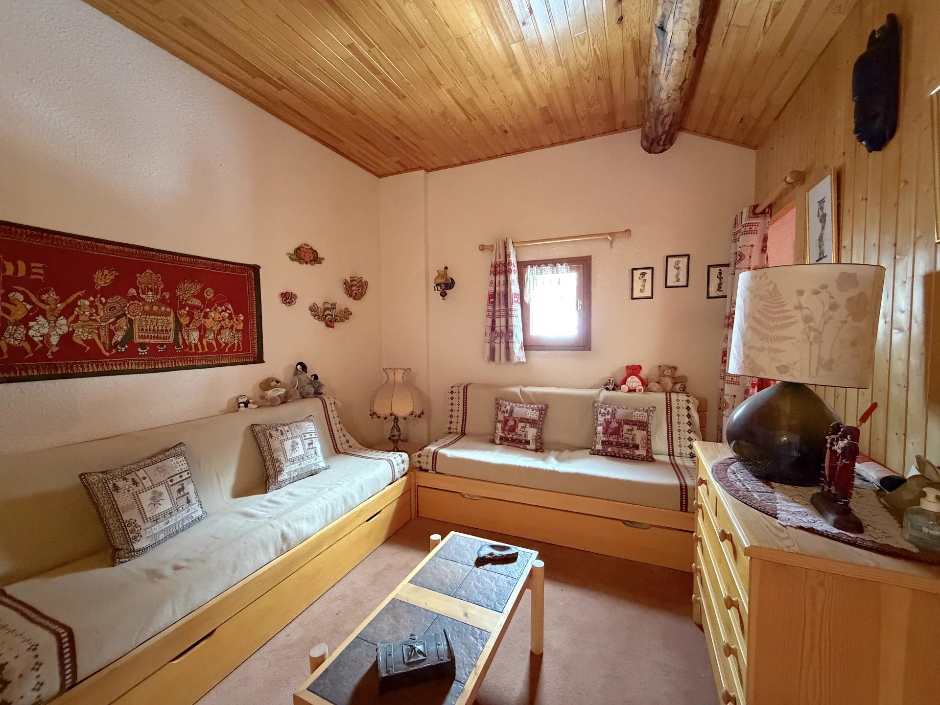 EXCLUSIVITÉ C&M IMMOBILIER - CENTRE-VILLAGE - GARAGE - BALCON - CAVES Au deuxième et dernier étage d'une copropriété située dans le centre du village, appartements duplex déjà réunis composés d'une entrée, deux pièces de vie avec cuisine, deux mezzanines spacieuses actuellement aménagées en deux chambres et un coin nuit, deux salles de bains et deux WC. Deux balcons, exposés SUD et NORD. Un parking sécurisé commun, deux caves et un garage privatif.