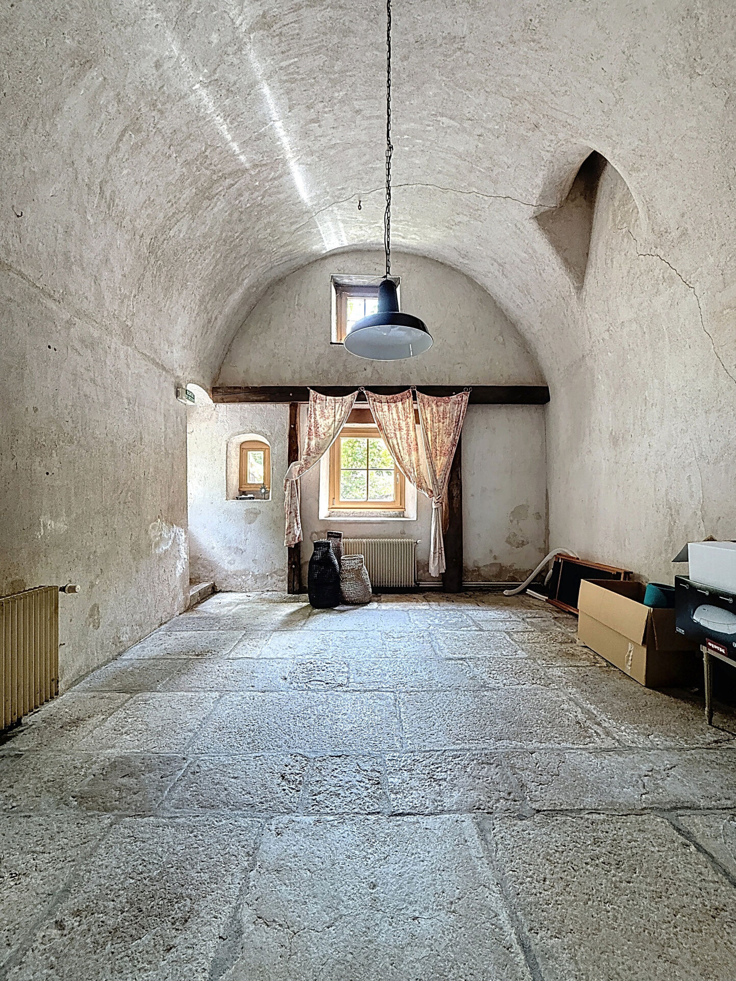 Maison principale : env. 450 m² divisés entre espace privatif (6 chambres, 3 salles d'eau, cuisine récente, salon avec poêle à granulés, terrasse & jacuzzi) et espace professionnel avec grande salle de réception, coin bar, cuisine semi-pro, chapelle voûtée, véranda, machinerie historique.