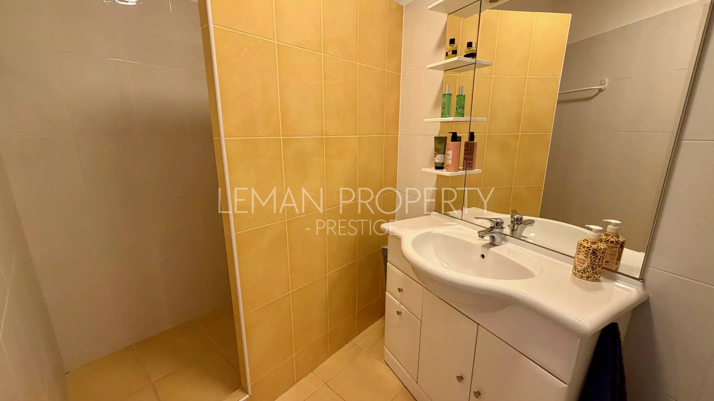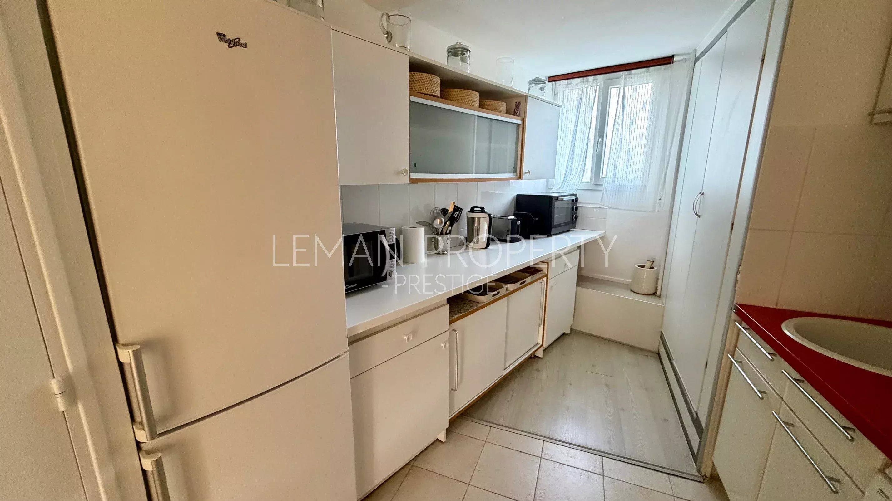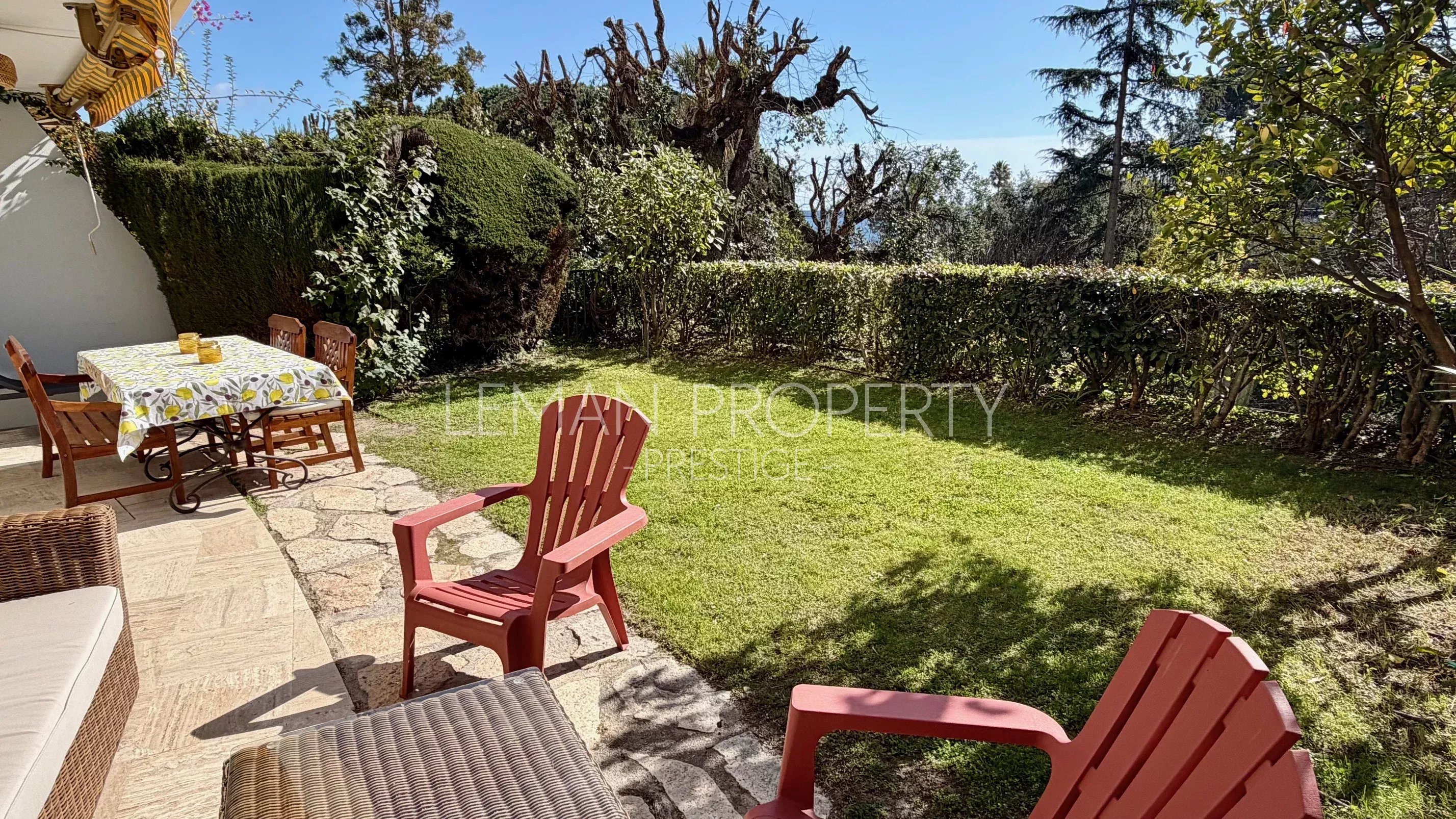 Au sein d'une luxueuse résidence fermée avec régisseur et services, parc paysager de 4 hectares, piscine, tennis et terrain de pétanque, très bel appartement 2 pièces traversant de 53,64 m2. Le bien comprend une entrée, une cuisine équipée, un séjour et une chambre possédant de grandes baies vitrées donnant sur une belle terrasse de 14 m2 et un jardin privatif de 51 m2, une salle de douche et des toilettes séparées. Vendu avec 1 cave en sous-sol. Places de parking sécurisées dans la résidence, possibilité de louer un box. Proche mer à pied. Charges de 260 euros par mois, incluant l’eau et le chauffage.