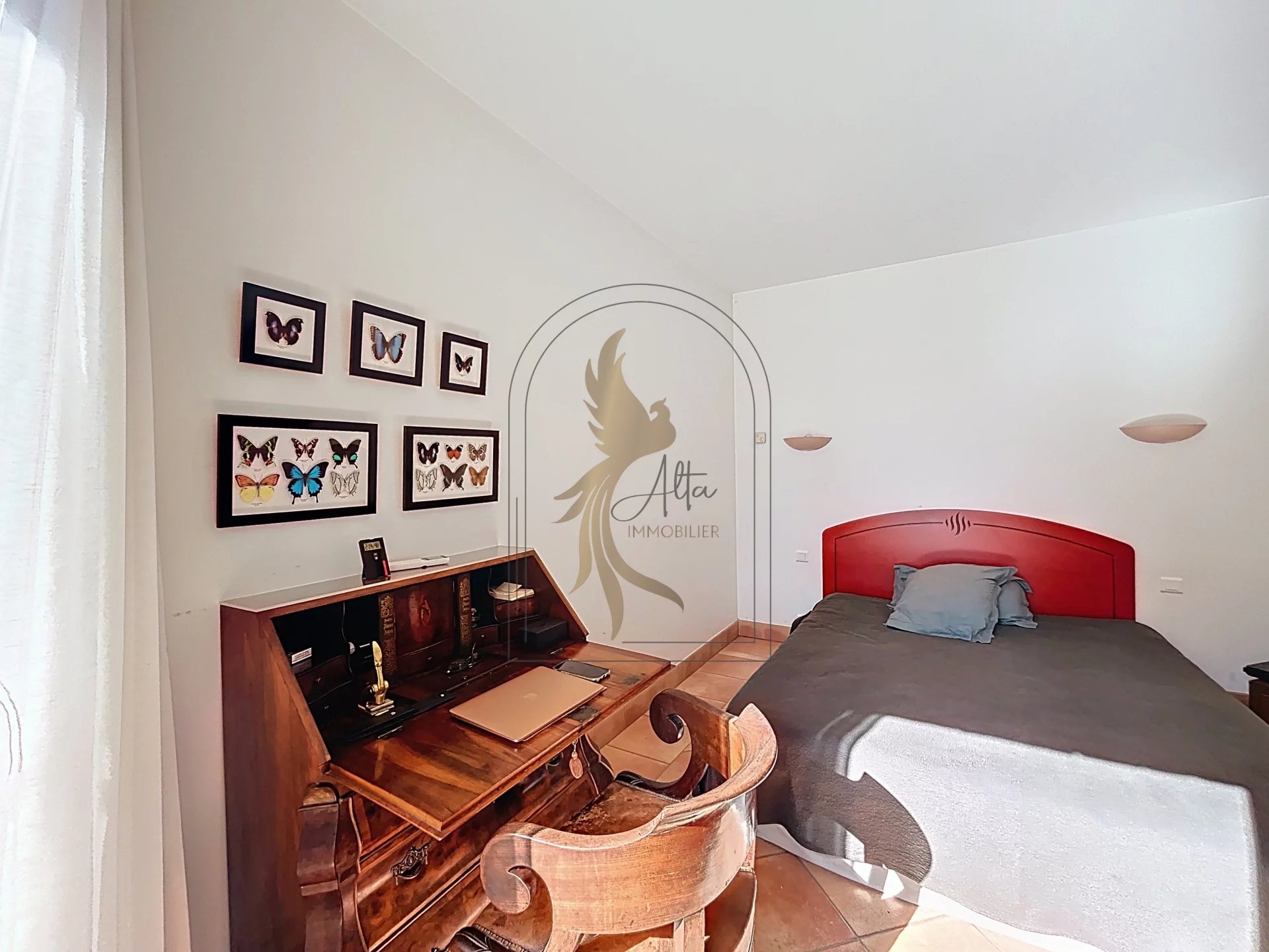 [SOUS OFFRE] Située sur les hauteurs de Porto-Vecchio, cette villa offre un cadre exceptionnel avec vue sur la mer et les montagnes, le tout dans un environnement paisible, à proximité du centre-ville et sans aucun vis-à-vis. La maison, d'environ 130 m², se compose d'un séjour lumineux, d'une cuisine séparée, et d'une terrasse dotée d'une piscine offrant une magnifique vue . La partie nuit se compose de deux chambres, d'une salle de bains et de toilettes indépendantes. Le niveau inférieur abrite un appartement indépendant d'environ 50 m², idéal pour accueillir des invités ou pour un usage privatif. À l'extérieur, la piscine de 7x4 mètres, le solarium, la cuisine d'été, ainsi qu'une buanderie et un carport viennent enrichir les prestations. Le tout est implanté sur un terrain de 2200 m² arboré d'essences locales, offrant un véritable havre de paix. Cette propriété est un coup de cœur, une visite s’impose pour apprécier toute sa beauté.
