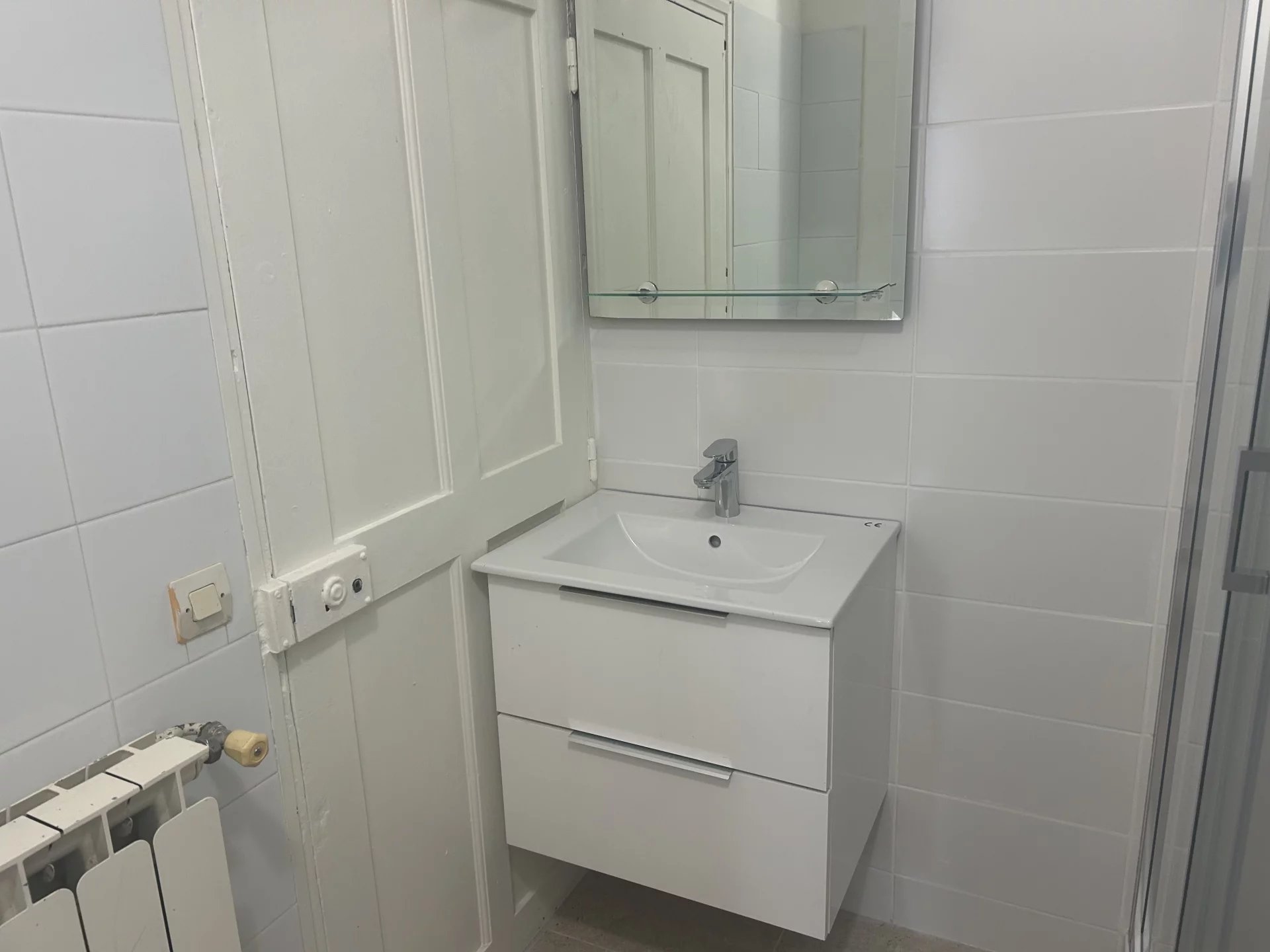 Ce logement rénové, d'une surface de 63,50 m², comprend une pièce de vie