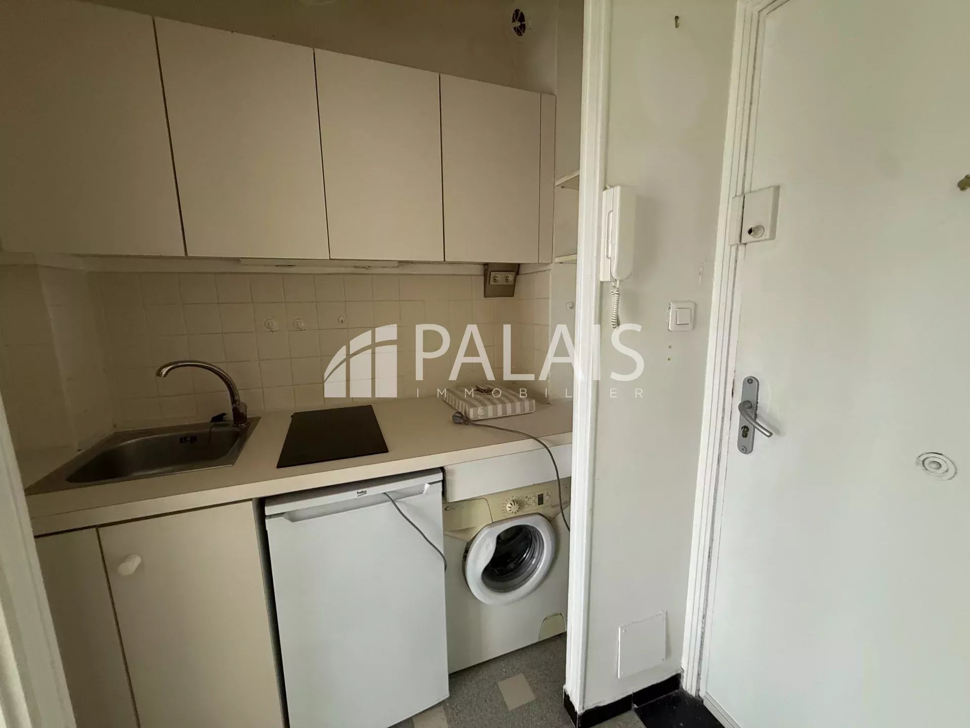 A Saint Laurent du Var, en face de la mer, proche CAP 3000, joli studio de 21 m²au quatrième et dernier étage avec ascenseur. Séjour, kitchenette équipée avec lave-linge, salle de douche avec WC, cave. L'eau froide et chauffage collectif. Proche Cap 3000. Dépôt de garantie : 567 €