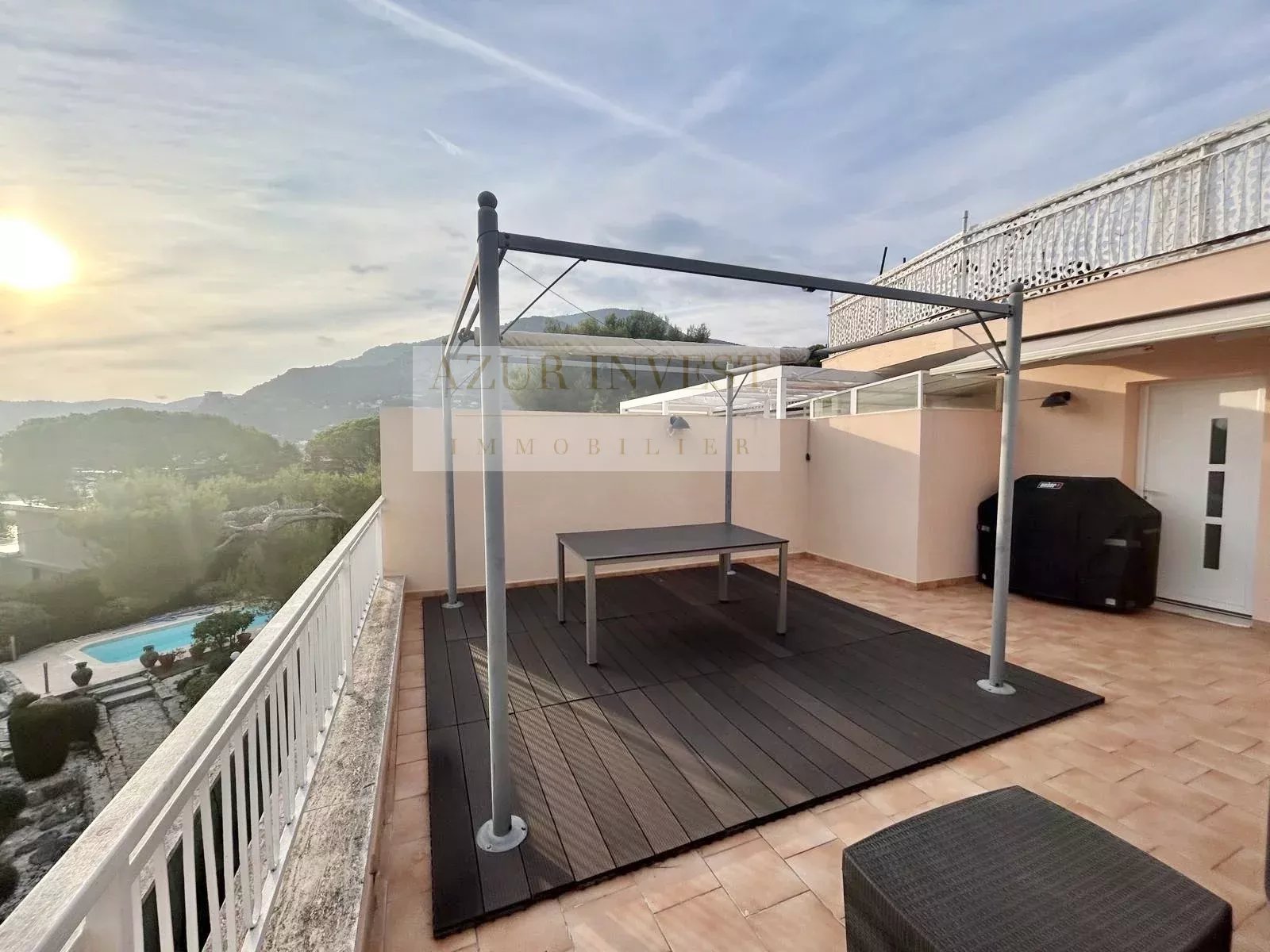 Azur Invest vous propose à la vente, dans une petite copropriété située dans un quartier prisé et de grand standing : Un charmant appartement de 47 m², en bon état général, comprenant: Une entrée, séjour lumineux, cuisine séparée, chambre, salle d'eau. Cet appartement bénéficie d’un balcon exposé sud/sud-ouest, offrant une vue panoramique dégagée, parfaite pour profiter des couchers de soleil. Un toit-terrasse privatif d’environ 30 m², idéal pour vos moments de détente, repas en plein air ou aménagements paysagers. Un bien rare sur le secteur, alliant confort, extérieur et emplacement privilégié. Double vitrage, climatisation pour votre confort Parking et cave inclus