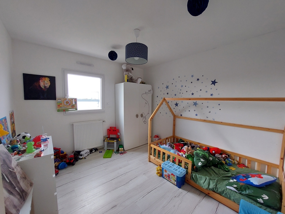 CONTEMPORAINE TRES LUMINEUSE DE 2020, située en impasse, au calme offrant des prestations soignées et des volumes confortables. Au rez de chaussée : L' entrée s'ouvre sur une pièce de vie lumineuse accès terrasse, dotée d'une cuisine ouverte aménagée et équipée, d'un cellier attenant optimisant le rangement, une chambre, une salle de douche et un wc. A l'étage le palier dessert trois chambres supplémentaires, salle de bains, et wc. A l'extérieur vous profiterez du jardin avec une grande terrasse exposée plein Sud . Garage attenant et abris de jardin. Le tout sur 695 m² de terrain. Une maison récente, fonctionnelle, offrant un cadre de vie agréable. A VISITER RAPIDEMENT !! (5.50 % honoraires TTC à la charge de l'acquéreur.)
