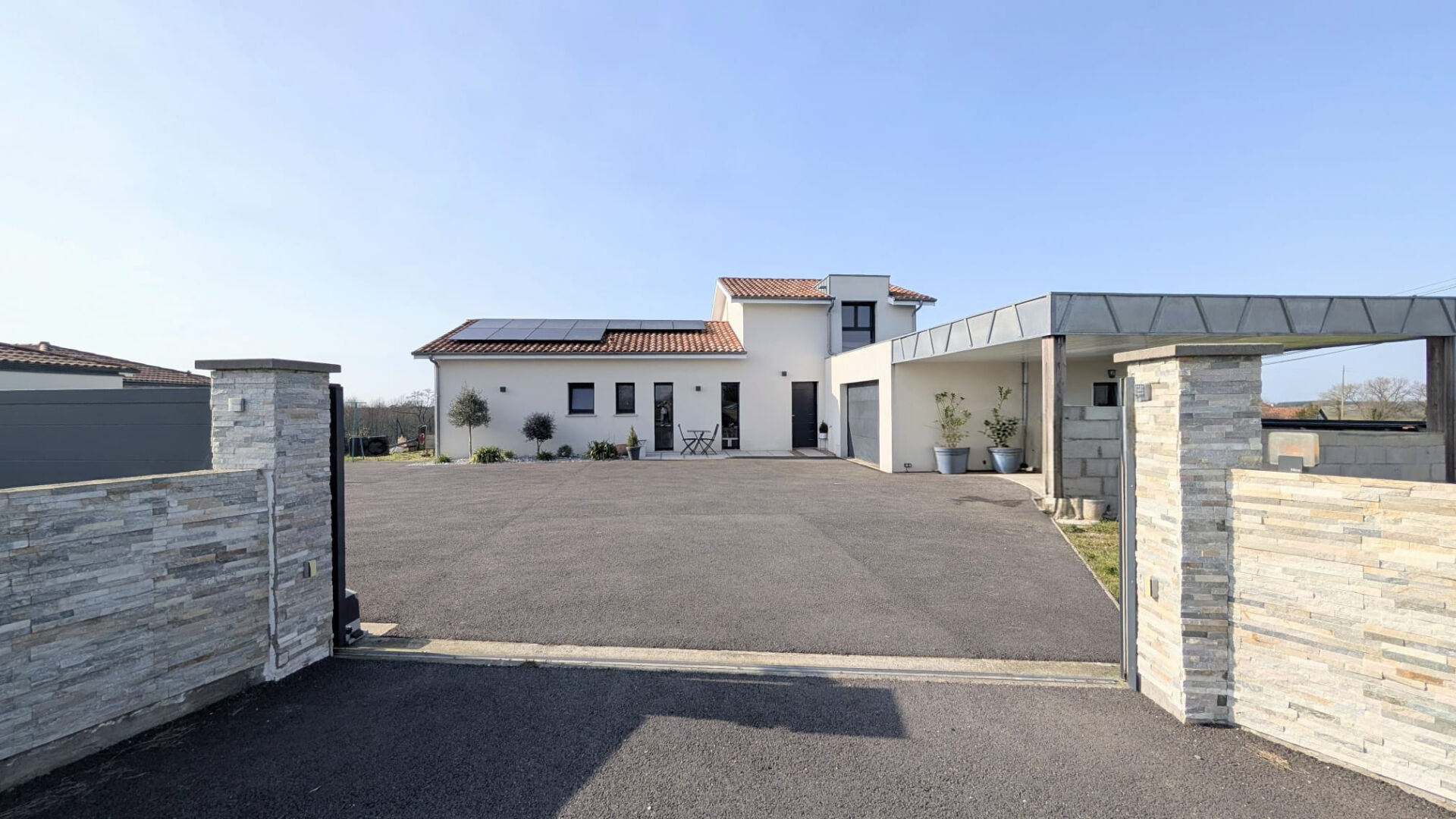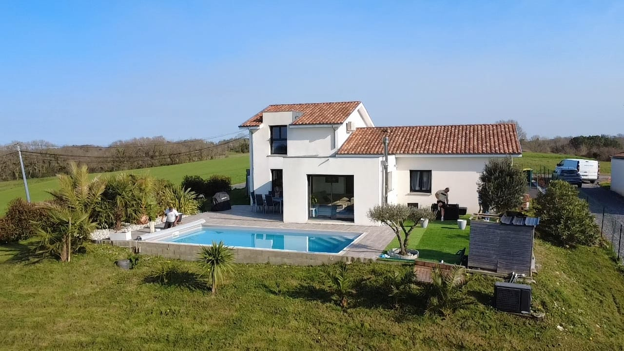 Située à proximité d'Orthez, cette superbe maison contemporaine de standing construite en 2019 d'une superficie de 148 m² offre un cadre de vie particulièrement agréable, alliant volumes généreux, luminosité et prestations de qualité. La maison est composée d'un salon/séjour/salle à manger spacieux et baigné de lumière, ouvert sur une belle cuisine fonctionnelle donnant sur une terrasse. L'espace nuit se compose de 4 chambres confortables, dont une suite parentale disposant de son dressing et de sa salle d'eau privative. Une salle de bain équipée à la fois d'une baignoire et d'une douche répond parfaitement aux besoins de la famille, complétée par un cellier pratique pour l'organisation du quotidien. A l'extérieur, le terrain entièrement clôturé accueille une piscine au chlore de 8 X 4 m, idéale pour profiter pleinement des beaux jours. Le portail électrique, le garage et le carport assurent confort et facilité de stationnement. La maison bénéficie également de 11 panneaux photovoltaïques en autoconsommation avec encore 24 années de garantie, ainsi que de la fibre, apportant un véritable atout en termes de performance énergétique et de confort moderne. Un bien rare sur le marché, coup de coeur assuré. Les honoraires sont à la charge du vendeur !! Montant estimé des dépenses annuelles d'énergie pour un usage standard : entre 878 euros et 1188 euros par an. Prix moyens des énergies indexés sur les années de référence 2021, 2022, 2023 (abonnements compris)