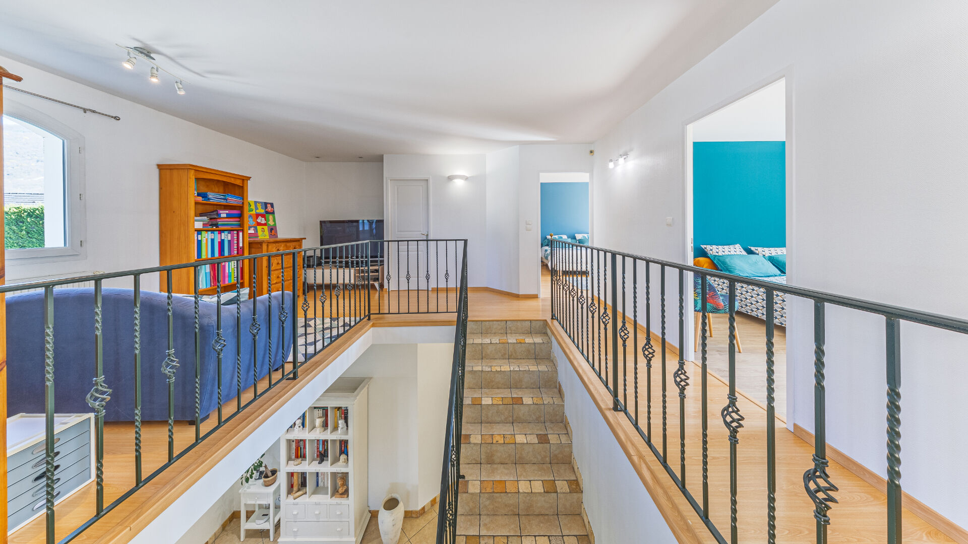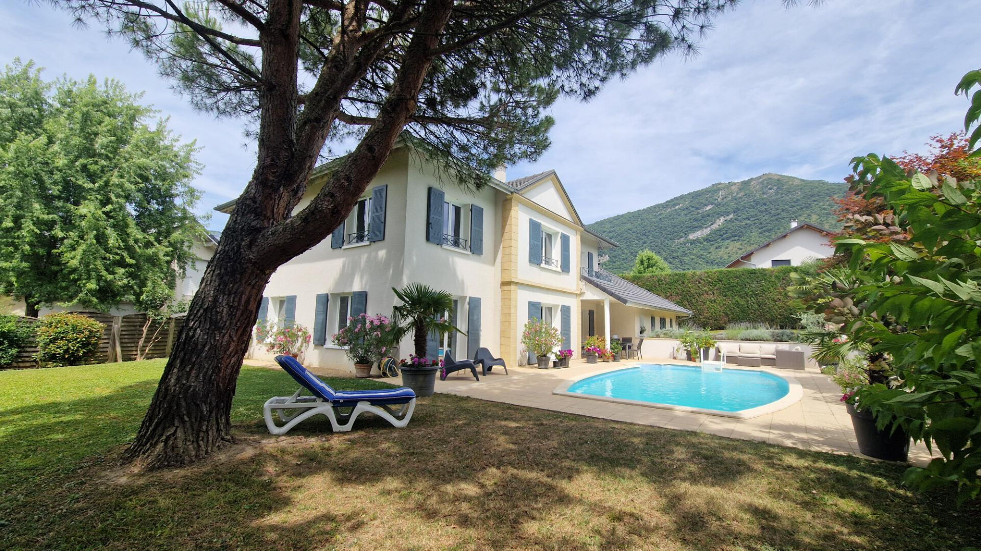 CHALLES LES EAUX TRES BELLE VILLA (RARE), dans un quartier résidentiel calme, au coeur de Challes les Eaux, rare à la vente, superbe maison de standing de 7 pièces sur son terrain de 1330 m² plat et arboré, avec piscine. Cette spacieuse maison de 223 m² habitables au style bourgeois propose de plain-pied une vaste pièce à vivre de 53 m² donnant sur terrasse, jardin et piscine au sud, une cuisine indépendante équipée, une buanderie, une chambre avec salle d'eau ; à l'étage, une mezzanine dessert une grande chambre parentale (dressing et salle de bains) ouvrant sur son balcon, 3 chambres aux très belles surfaces ainsi qu'une salle d'eau. Nota : hauteur sous-plafond de 2,70 m² au rdc. En annexe, un grand garage de 57 m² avec belle hauteur offre différentes possibilités.