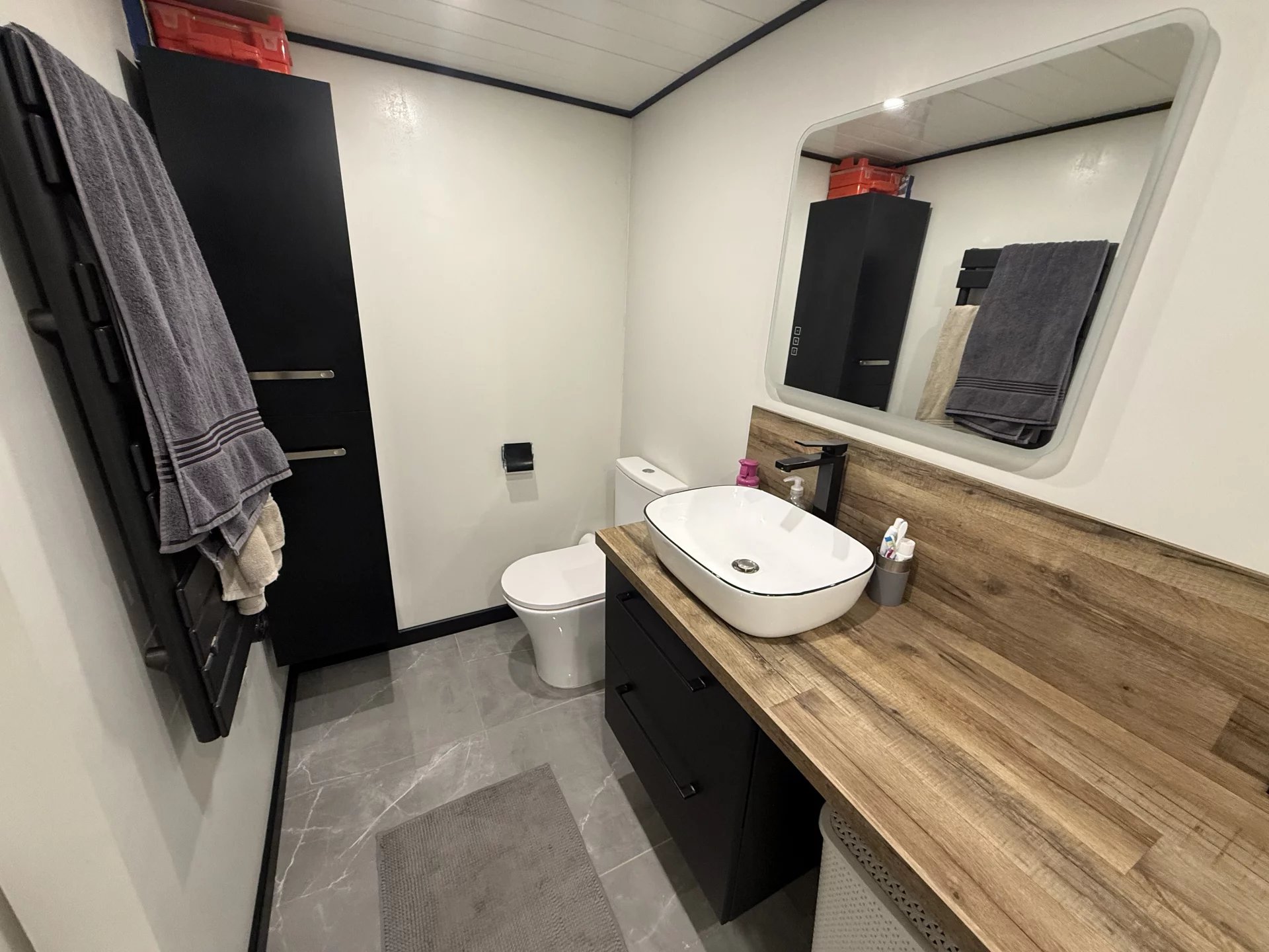 • 1er étage : 1 chambre + salle d'eau avec WC