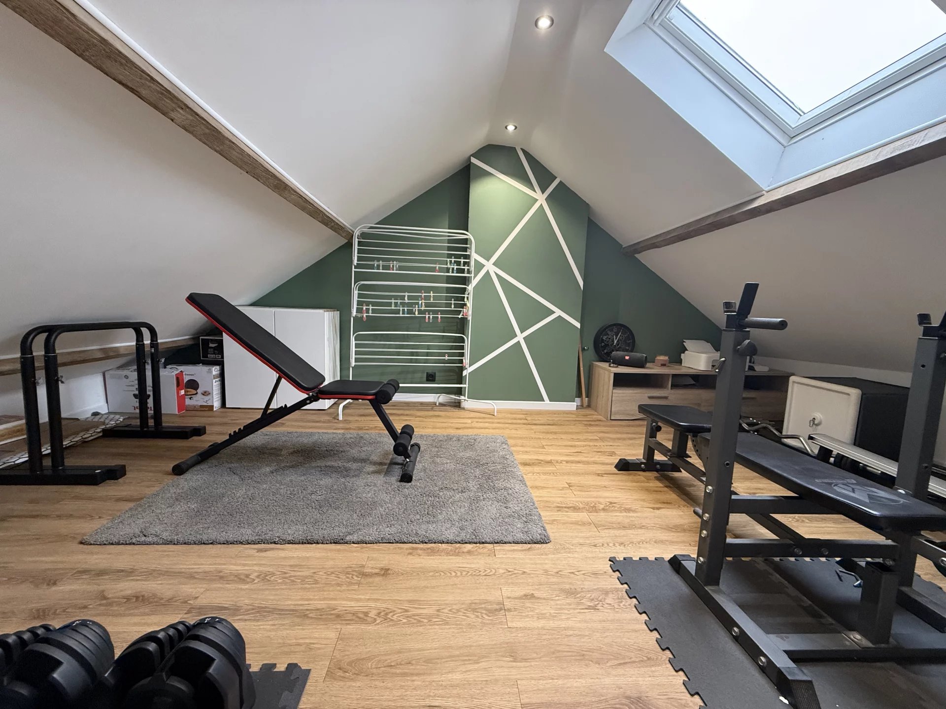 • 2e étage : 1 chambre + espace salle de sport (ou 3e