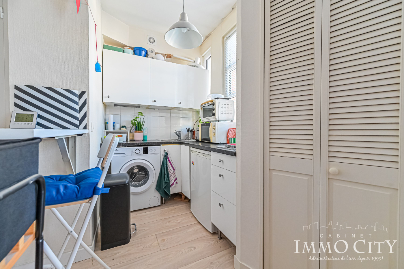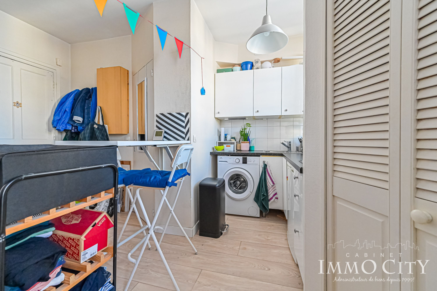 A 350m du métro, dans un quartier aux nombreux commerces, au 4ème étage sans ascenseur, charmant studio de 21.64m² comprenant : grande pièce à vivre avec cuisine ouverte, salle d'eau avec WC.