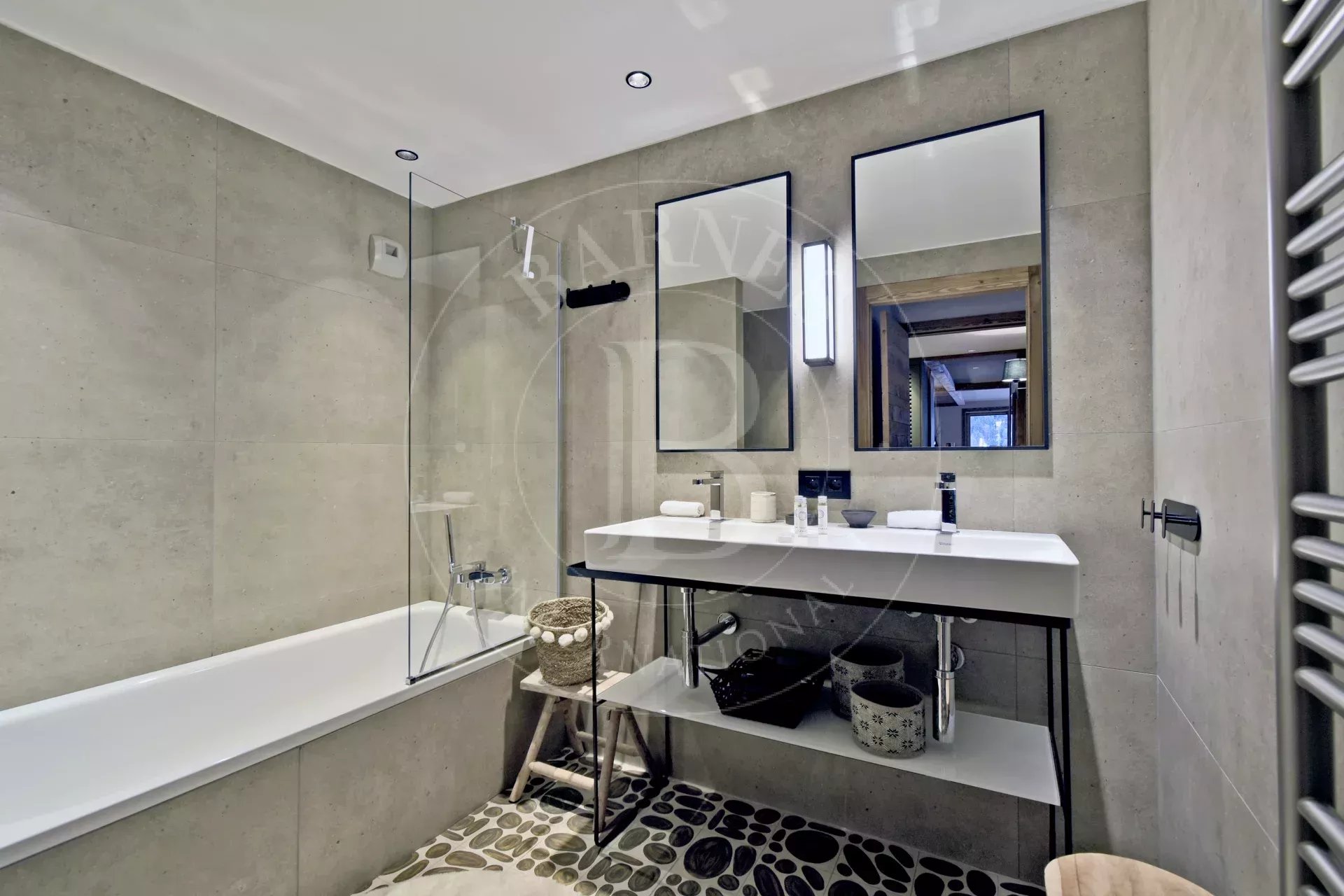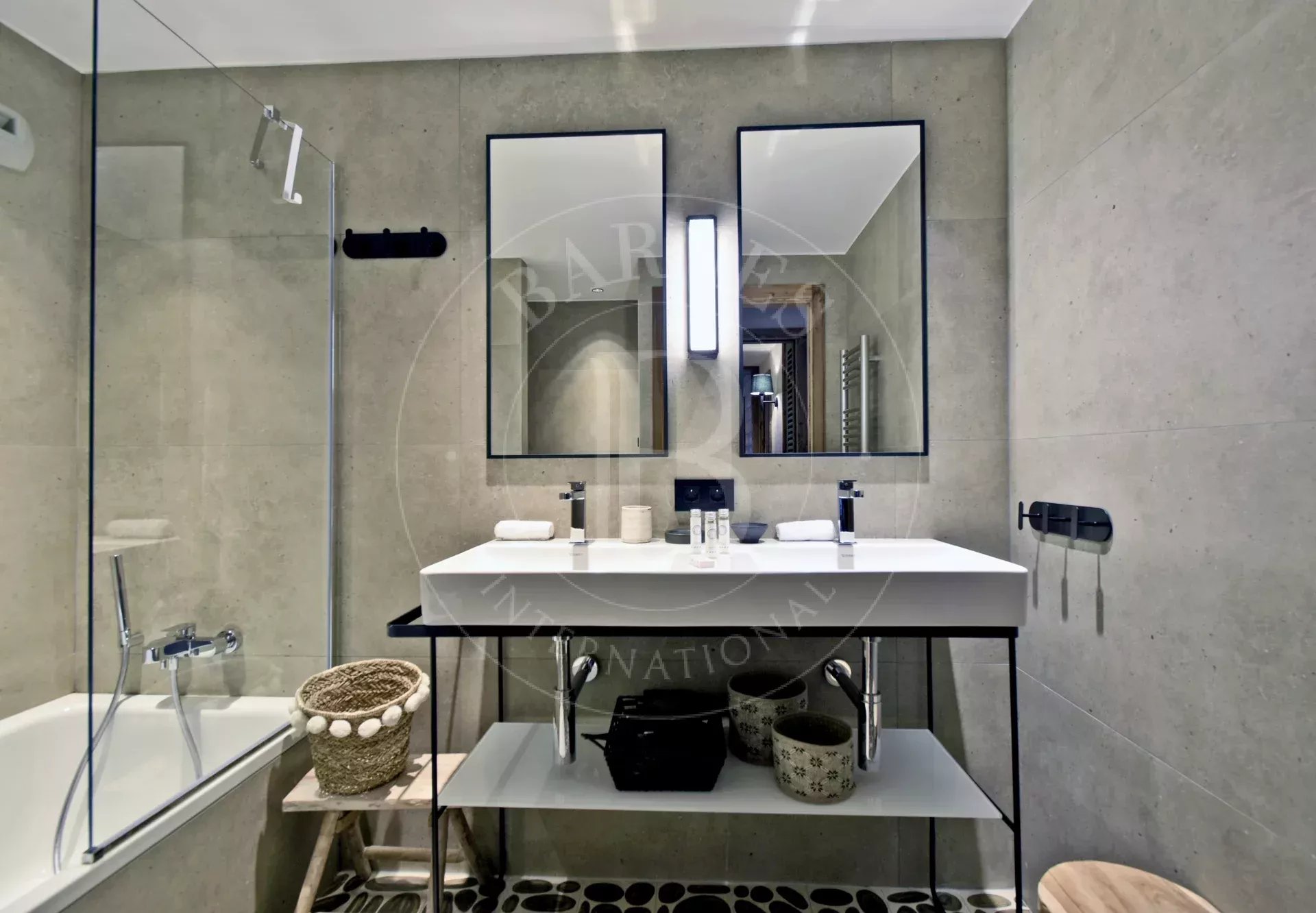 - Chambre 1 : lit double et télévision avec salle de bain, 2 vasques, 1 baignoire et 1 WC