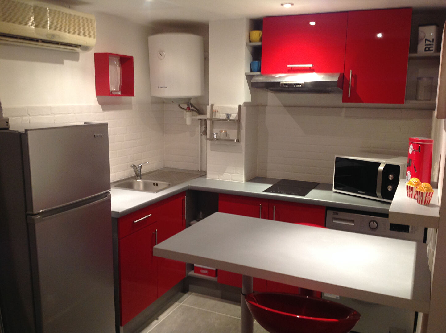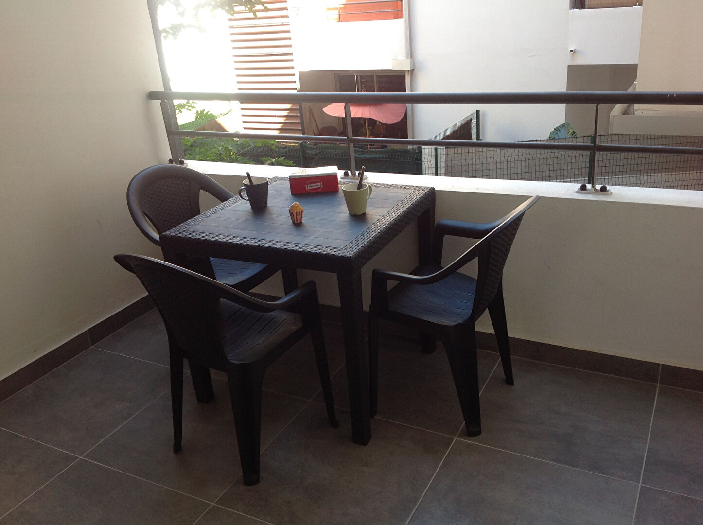 comprenant : une pièce principale climatisée avec placard de rangement, un coin cuisine aménagée et équipée, une salle d'eau avec WC, une varangue et une place de parking. Disponible au mois d'avril 2026.