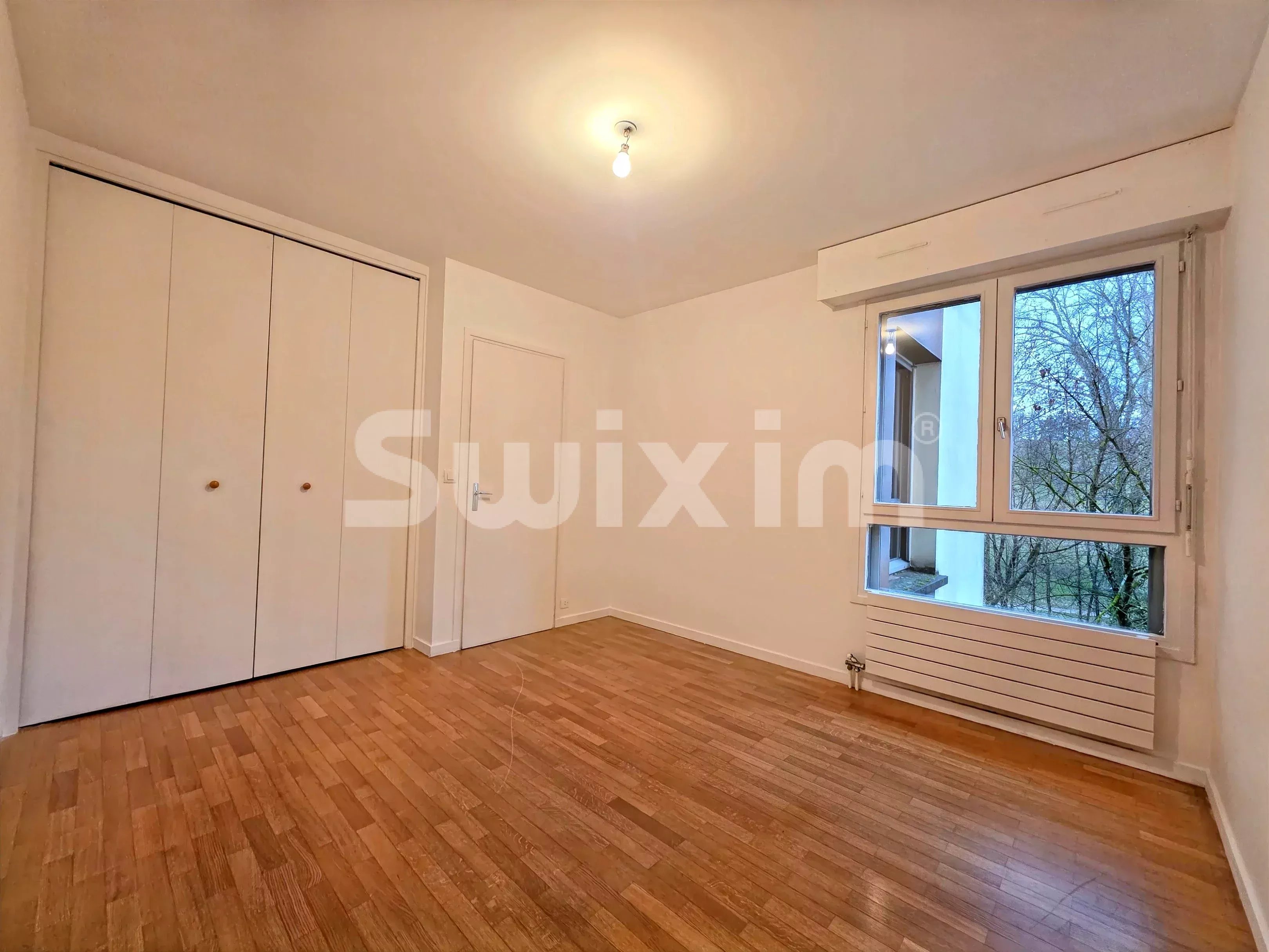 Le séjour de 23 m², baigné d'une lumière douce, s'ouvre sur un balcon en étage élevé : ici, aucun vis-à-vis, seulement la cime des arbres et le calme d'un parc chargé d'histoire.