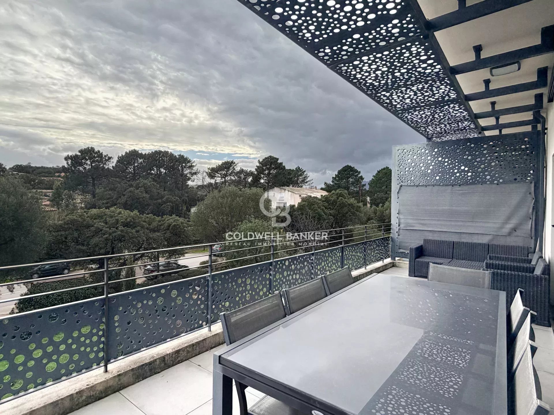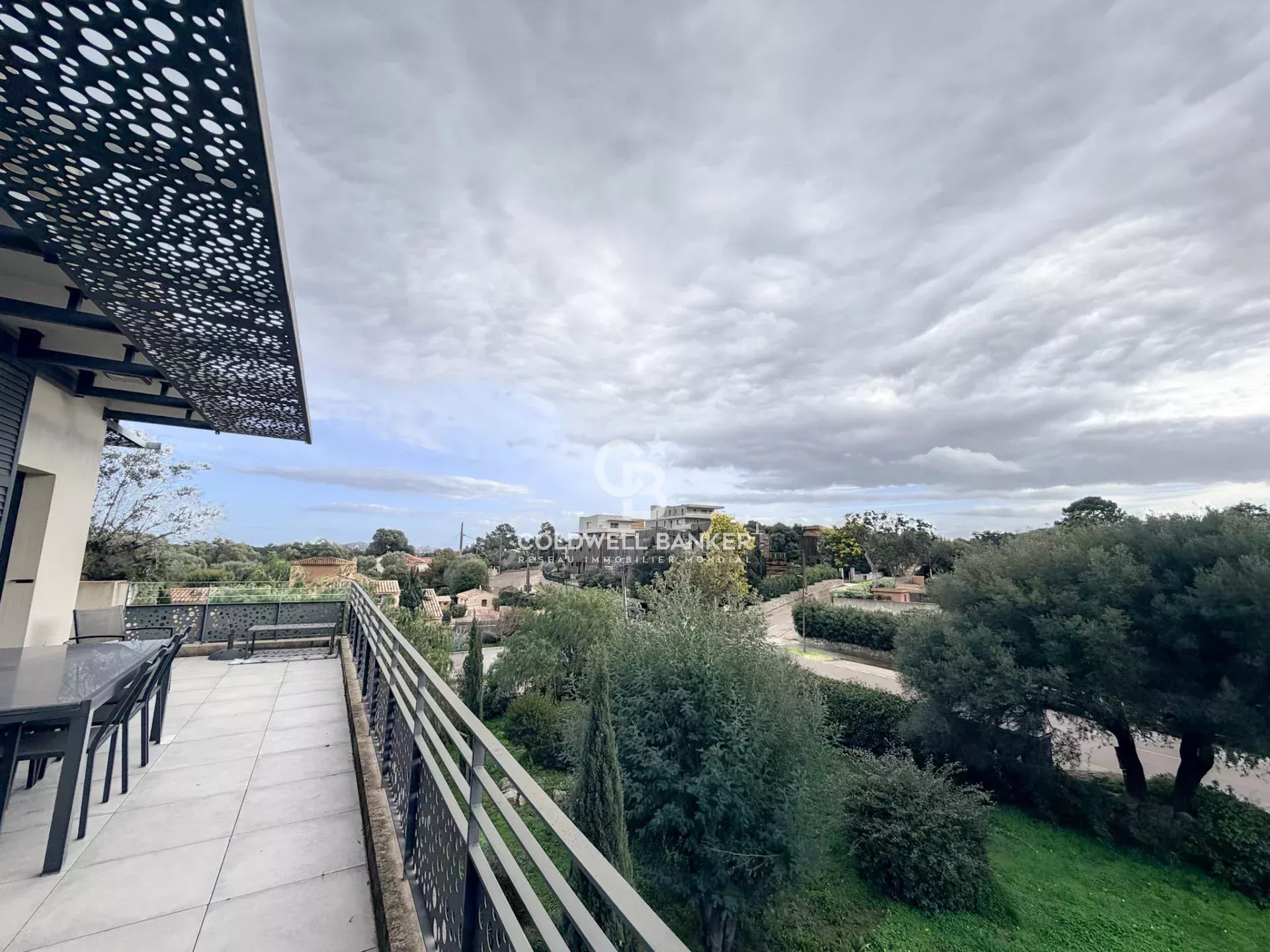 Situé au dernier étage d’une résidence de standing avec ascenseur, ce bel appartement d’angle T3 d’environ 75 m², bénéficie d’une situation privilégiée et d’une vue dégagée sans vis-à-vis. L’appartement se compose d’une entrée, d’un spacieux salon lumineux, d’une cuisine ouverte, d’un dégagement, d’une salle de bain avec WC, un débarras, ainsi que de deux chambres confortables. L’ensemble des pièces s’ouvre sur une magnifique terrasse périphérique d’environ 40 m², agrémentée de jolies casquettes en fer forgé offrant des zones ombragées, idéale pour profiter de l’extérieur en toute saison. Le bien bénéficie également de prestations de qualité : • climatisation réversible • double vitrage • garde-corps et éléments en fer forgé • jardinières • ascenseur • portail automatique • digicode et visiophone Pour plus de confort, l’appartement dispose également : • d’un cellier/buanderie sur le même palier, • d’une cave, • de deux places de parking. Idéalement situé, à proximité immédiate des commodités et à quelques minutes de la plage de Pinarello, ce bien constitue une très belle opportunité, aussi bien en résidence principale qu’en pied-à-terre. Coldwell Banker Allegrini Realty – Exclusivité 06 25 72 31 57 allegrini.realty@coldwellbanker.fr