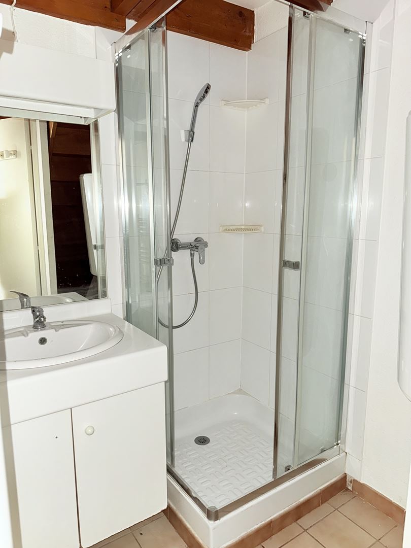 Elle se compose d'un séjour avec cuisine, d'une chambre, d'une salle d'eau avec sèche-serviettes, d'un WC et d'une seconde chambre en mezzanine.