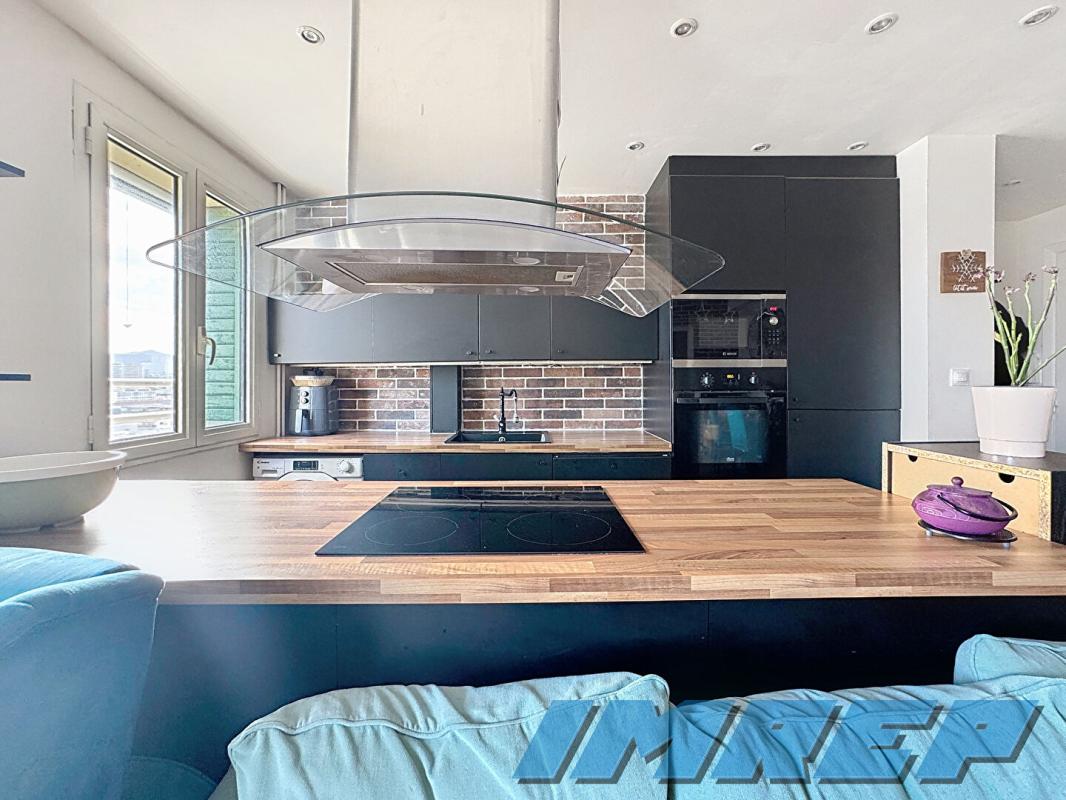 Le salon ouvert sur la cuisine créé un espace de vie très agréable. La cuisine moderne est parfaitement équipée. Un hall