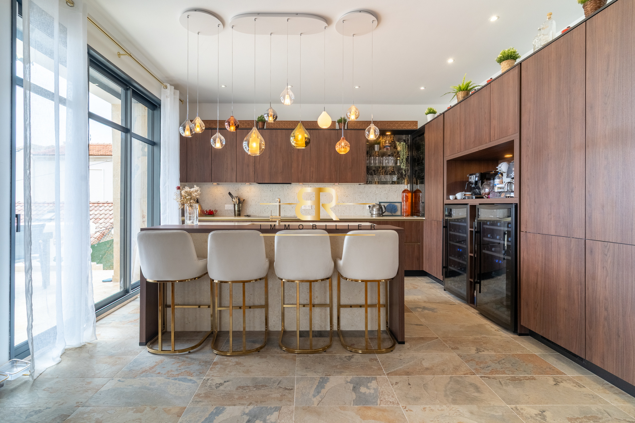 4 chambres dont une suite parentale et une Master Room avec terrasse privée, complétées par 3 salles de bains, plusieurs WC à tous les niveaux. Une vaste pièce de vie de 77m2 attenante à une cuisine ouverte entièrement équipée et desservant un sublime salon avec vue sur la MER.