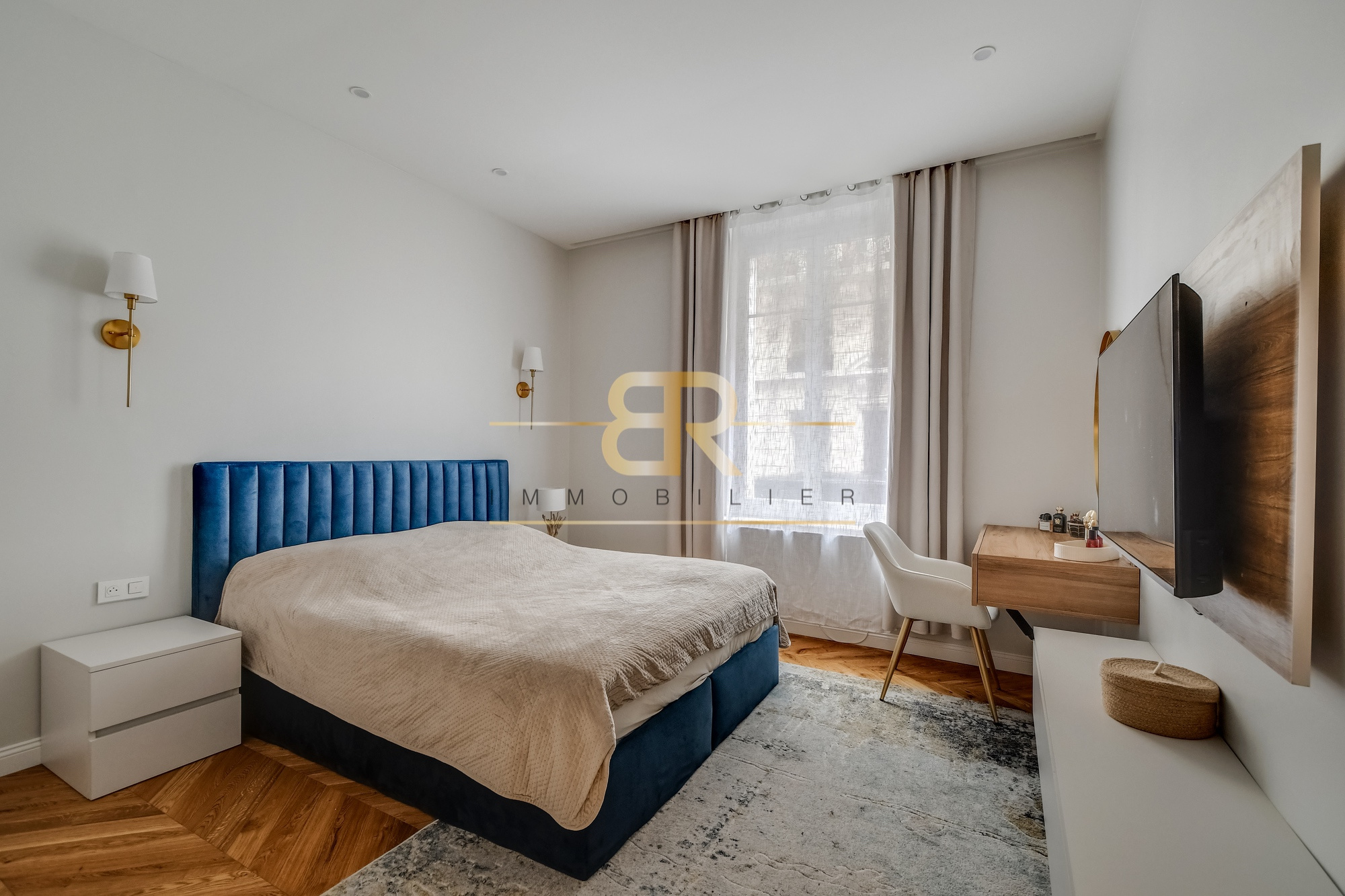 Cet appartement traversant a fait l'objet d'une rénovation complète par architecte, réalisée avec des matériaux haut de gamme et des prestations soignées : chauffage au sol,isolation thermique et phonique (accoustique) de grande qualité, volumes harmonieux et finitions élégantes.
