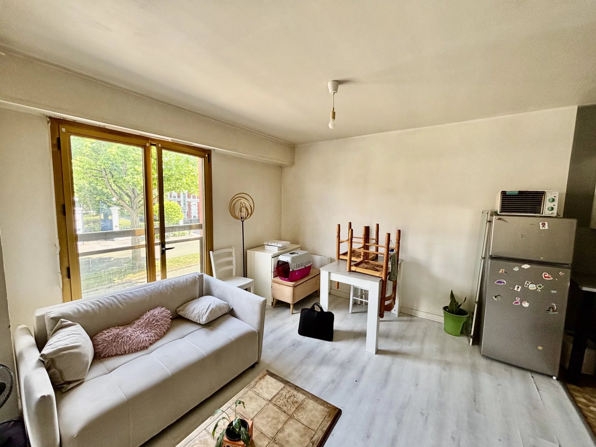 CAMBRAI - Résidence Le Vincennes (Boulevard Faidherbe) À VENDRE : T1 loué, à proximité immédiate du centre-ville Loyer : 430 €/mois + 20 € de charges Chauffage électrique. Fenêtres avec volets roulants. Résidence avec ascenseur. Une cave complète ce bien. Taxe foncière : 540 €/an Charges de copropriété : 74,33 €/mois PRIX : 69 800 € frais d'agence inclus Honoraires à la charge du vendeur. Ce bien vous est présenté par Céline Dubois : O6.51.01.75.91 ELEVEN Immobilier RSAC 894 557 123