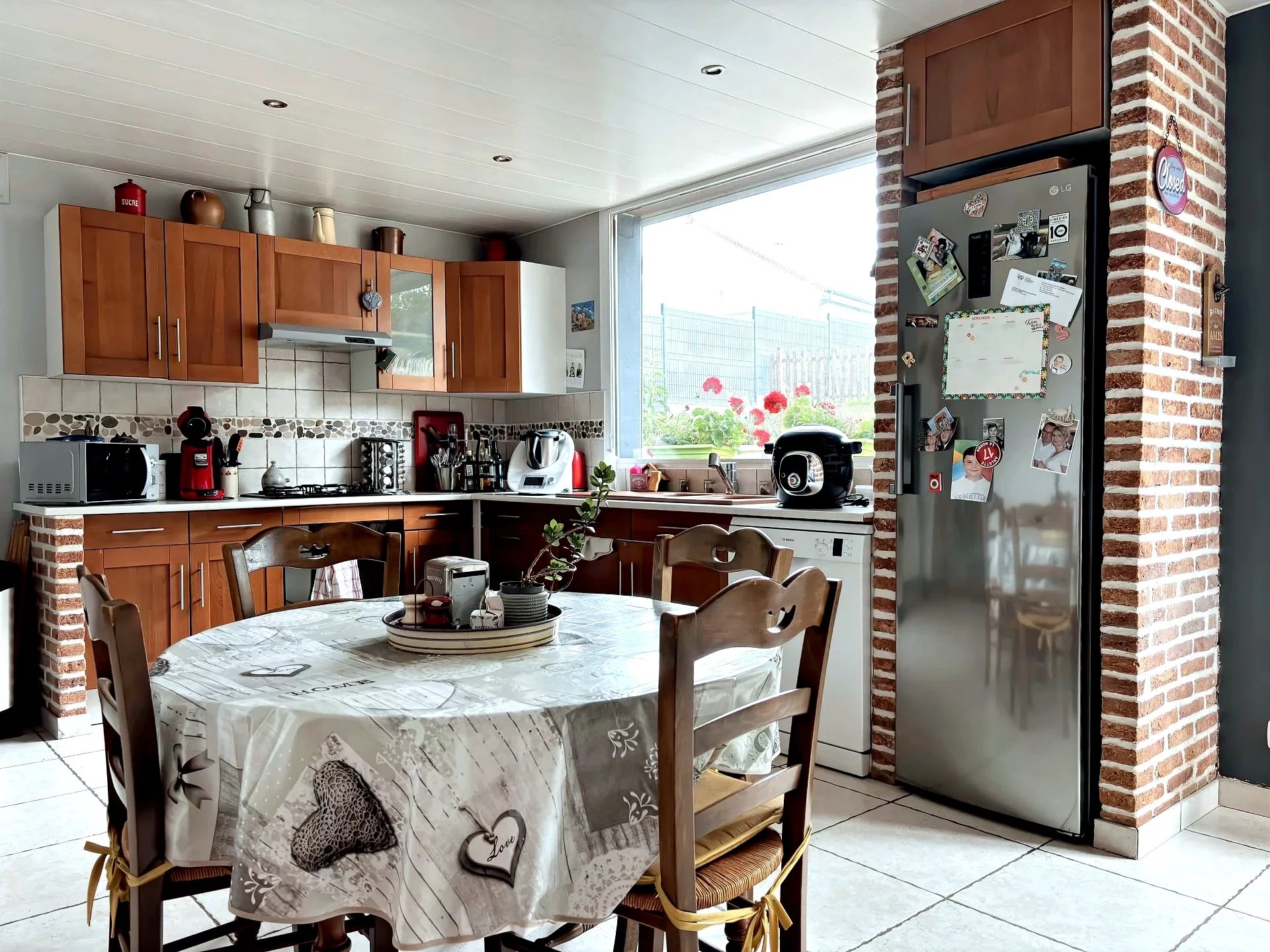 Charmante longère individuelle proche de Cambrai rénovée. Hall d'entrée desservant une cuisine équipée de 25 m2. Belle salle à manger avec poêle à granules et salon. Buanderie d'environ 20 m2. Cave. Salle de bain et Wc indépendant. A l'étage, palier donnant accès à trois chambres. Sur l’extérieur, la maison vous offre une grande terrasse avec jardin clos et arboré. La maison dispose également d'un grand garage de 60 m2 avec porte motorisée. Châssis pvc double vitrage. Tout à l’égout. Rien à prévoir. Faire vite!!! Geoffroy Beauloye Eleven immobilier Rsac de Douai 883172983 . 06x84x75x35x64