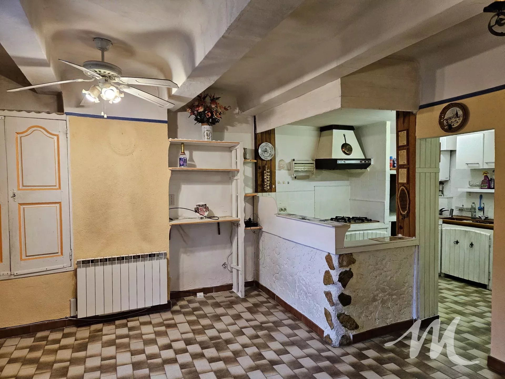 Cette maison de village traversante de 87m² élevée de deux étages dispose en rez de chaussée d'un grand garage et une belle cave voutée.