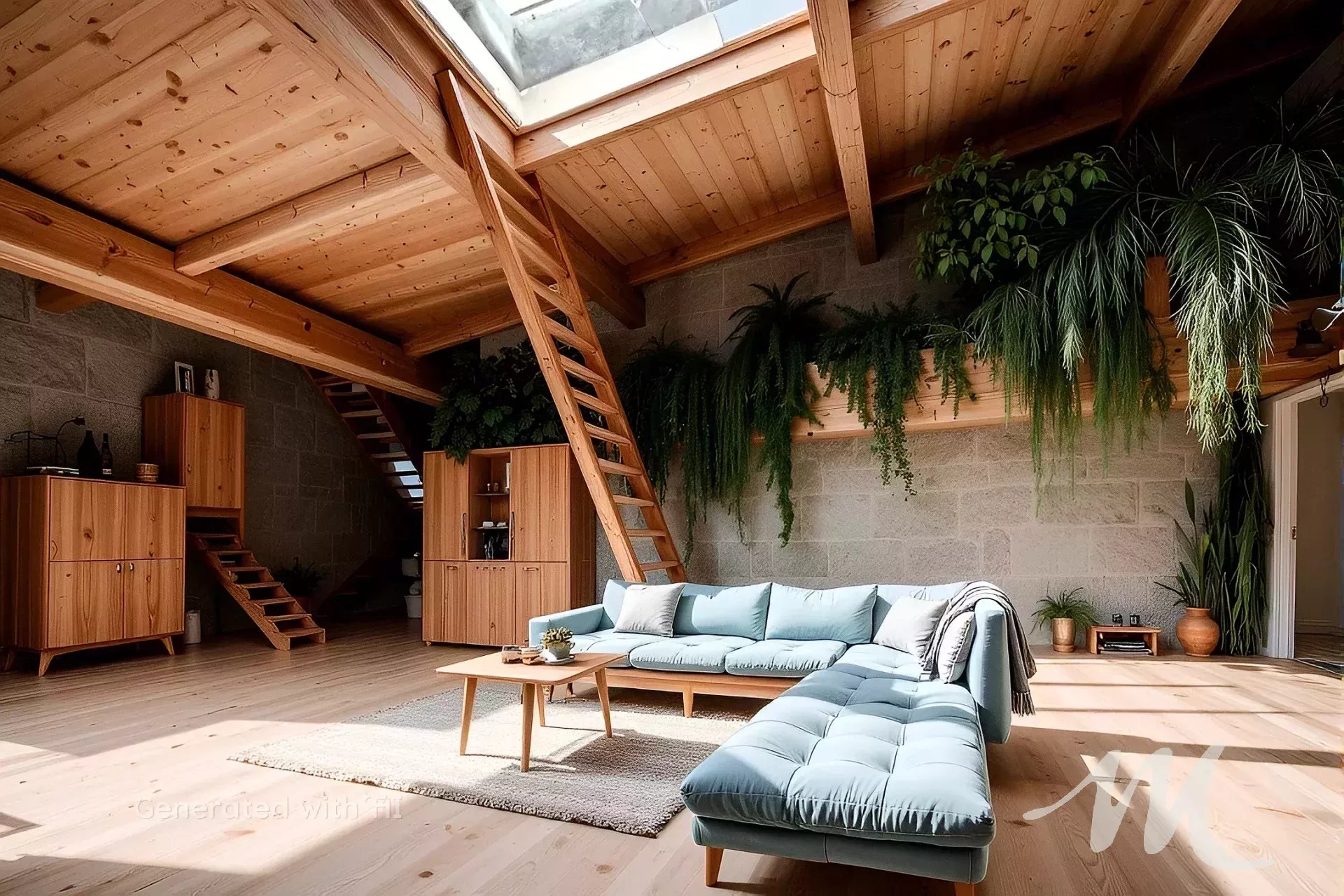 Un puits de lumière central apporte de la luminosité dans la cage d'escalier.