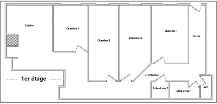 Exploité en colocation meublée. l’appartement offre 4 grandes chambres de 12m2 à 15m2. 2 salles de douche. 1 WC séparé et une cuisine dinatoire séparée.