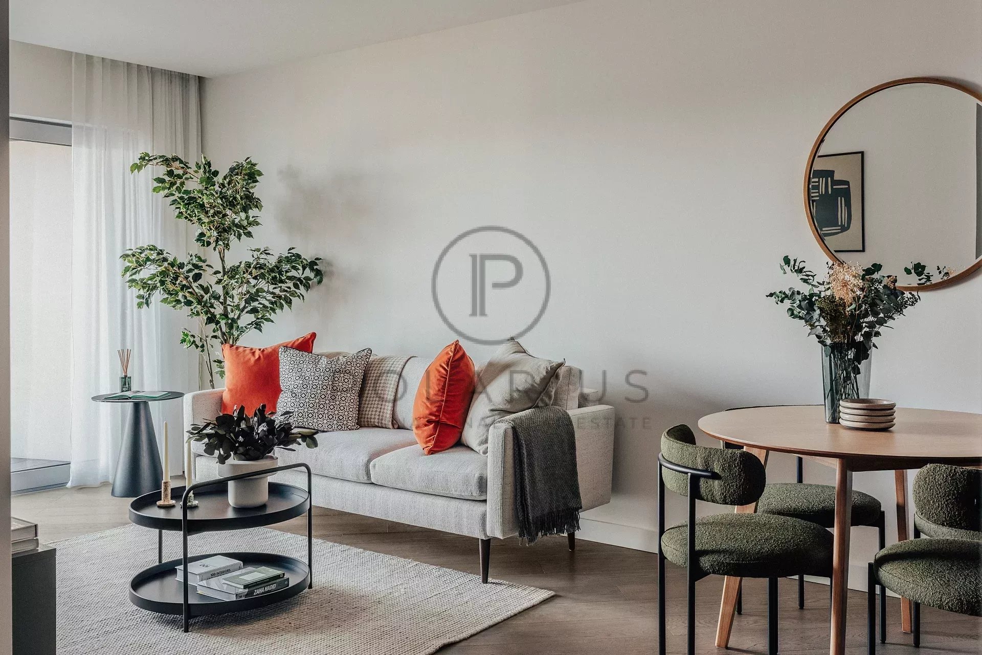 Ampia zona giorno a pianta aperta con finestre a tutta altezza