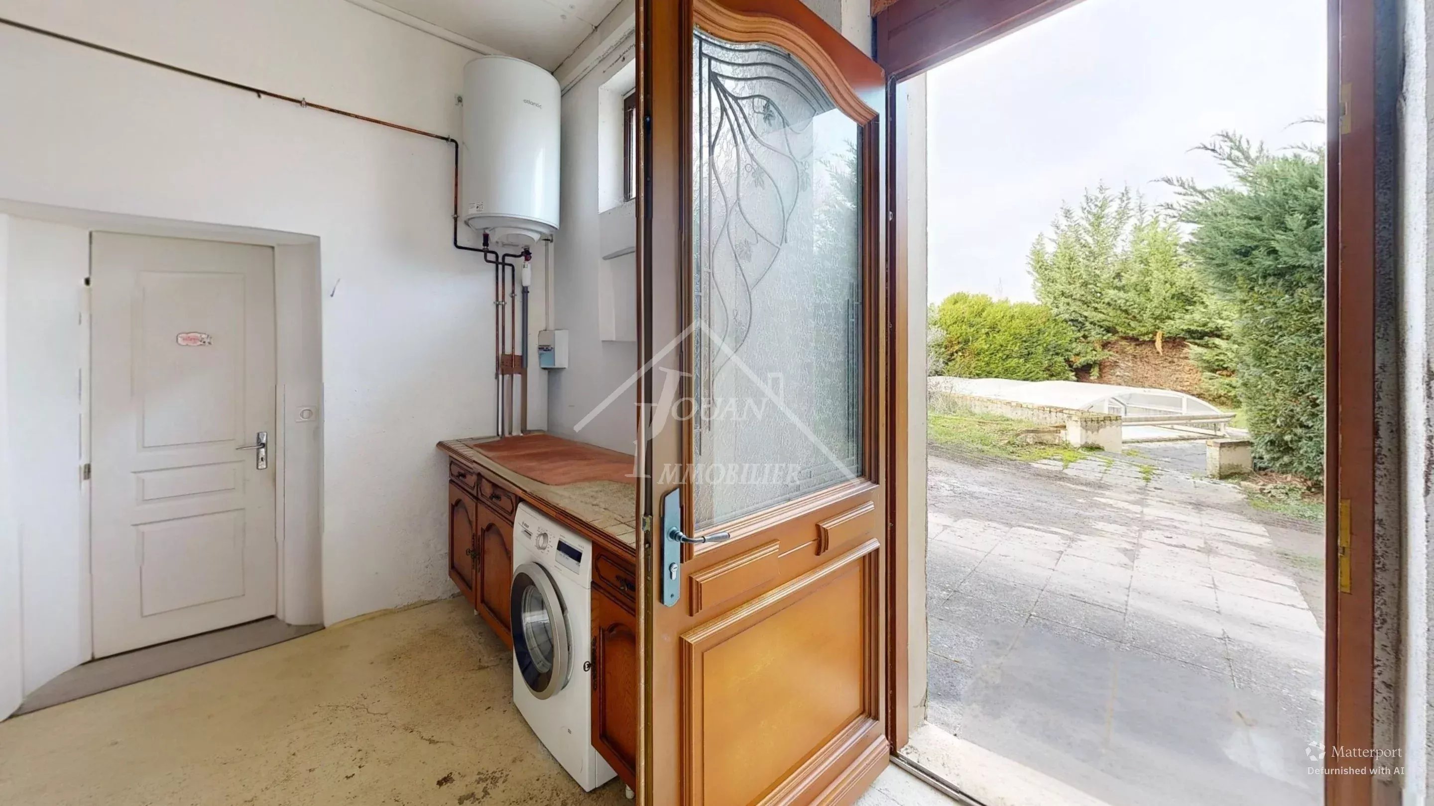 À vendre à Bourbon-l’Archambault, ville thermale, cette grande maison familiale idéalement située, proche de toutes les commodités, tout en bénéficiant d’une absence totale de vis-à-vis côté jardin, permettant de profiter pleinement de la vue et de la vie familiale. La propriété comprend une maison élevée sur sous-sol, des dépendances, un terrain et une piscine. La maison d’habitation se compose, au rez-de-chaussée, d’une entrée, d’une cuisine ouverte sur le salon, d’un séjour donnant sur une extension lumineuse avec baies vitrées et vue sur le château, de deux chambres dont une avec salle d’eau privative, ainsi que de toilettes séparées. À l’étage, vous trouverez deux chambres, une pièce pouvant servir de salle de jeux ou de bureau, donnant accès à une salle d’eau avec toilettes et à un sauna. Le sous-sol comprend une buanderie, une conserverie et une pièce pouvant servir de cuisine d’été. À l’extérieur, vous profiterez d’un grand jardin arboré et fleuri de plus de 2 000 m², d’une piscine coque avec dôme télescopique (à remettre en état avant mise en eau) pour profiter pleinement des beaux jours, ainsi que d’une mare. Dans le prolongement de la maison, un long préau permet d’accueillir jusqu’à trois véhicules et/ou le bois de chauffage. La propriété bénéficie d’un portail électrique, d’un chauffage par pompe à chaleur complété par un insert dans le séjour, de fenêtres en double vitrage et est raccordée au tout-à-l’égout. Les commerces, supermarchés, école, collège et même les thermes sont accessibles facilement à pied. Des travaux de rafraîchissement, tels que la peinture ou la tapisserie, sont à prévoir afin que ce bien puisse correspondre au plus près à votre maison de rêve. Une visite virtuelle est à votre disposition! DPE: E Les informations sur les risques auxquels ce bien est exposé sont disponibles sur le site Géorisques: www.georisques.gouv.fr