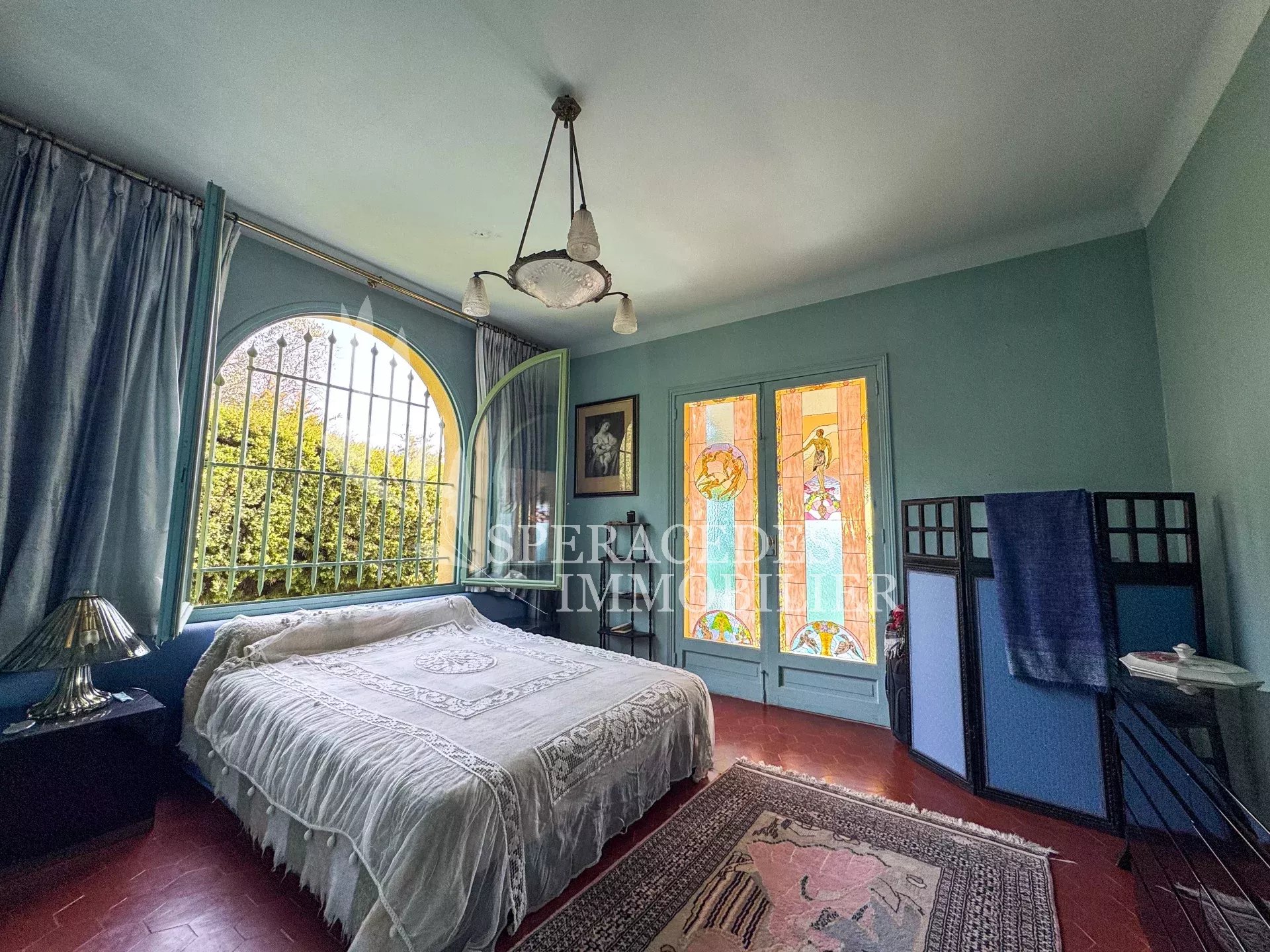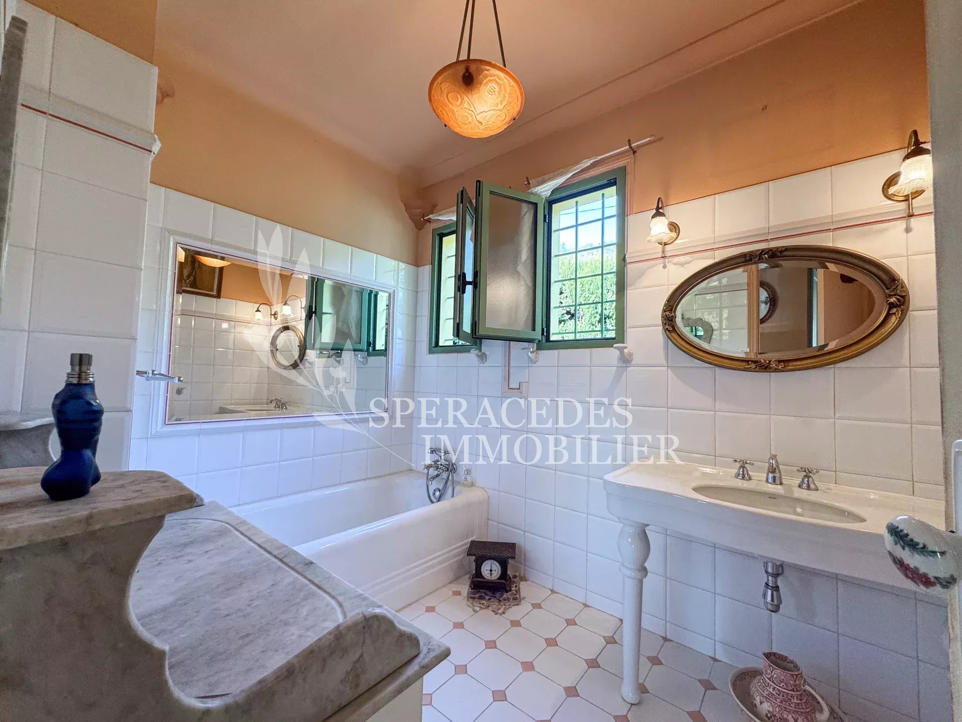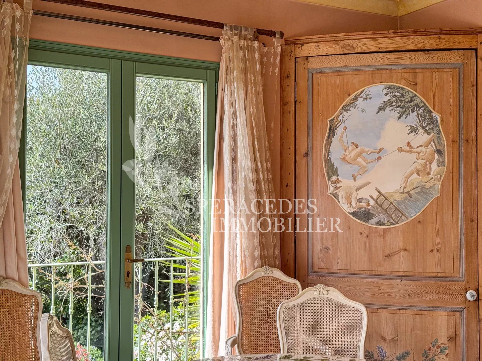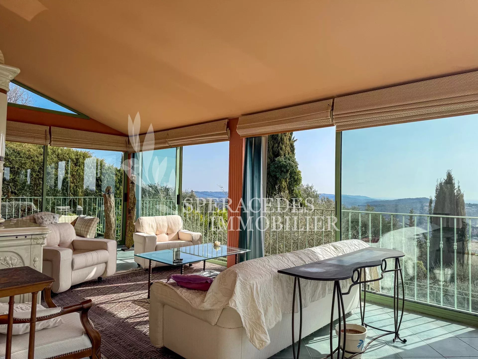 Spéracèdes, belle maison atypique bénéficiant d’une vue mer, collines et lac, à pied du village avec une maison d’amis indépendante, pour une surface habitable totale d’environ 230 m². La maison principale, d’environ 193 m² répartis sur deux niveaux, se compose : Au rez-de-chaussée d’un séjour véranda avec poêle, d’un salon / salle à manger avec cheminée, d’une cuisine ouverte, de deux chambres et d’une salle de bains. En rez-de-jardin, elle offre deux chambres supplémentaires, une salle d’eau avec sauna, un séjour, une cuisine, un cellier, une cave à vin ainsi qu’un local chaudière. La maison d’amis, d’une surface d’environ 35 m², comprend un salon, une cuisine et une salle de bains. L’ensemble est édifié sur un terrain de 2 290 m² et bénéficie d’un bel espace piscine avec cuisine d’été ainsi que d’un abri voitures. La propriété est raccordée au tout-à-l’égout et offre la possibilité de détacher une parcelle d’environ 750 m², déjà prévue par géomètre.