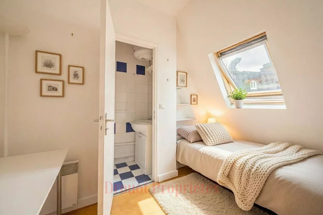 2 CHAMBRES DE SERVICE - DERNIER ÉTAGE Dans un quartier prisé du XVIe arrondissement, à quelques pas du lycée Janson de Sailly, deux chambres de service contiguës et réunies au sixième étage par l'escalier de service (entièrement rénové) d'un bel immeuble en pierre de taille de 1890. Ce bien récemment rénové se compose d'un coin salon, d'une chambre avec une salle d'eau (douche et lavabo) et ballon d'eau chaude. Kitchenette à prévoir. Toilettes sur le palier. Calme absolu et vue dégagée. Surface et DPE (E) adaptés à la location. A proximité des commerces de l'avenue Victor Hugo et de la rue des Belles Feuilles. Emplacement pour les vélos dans la cour.