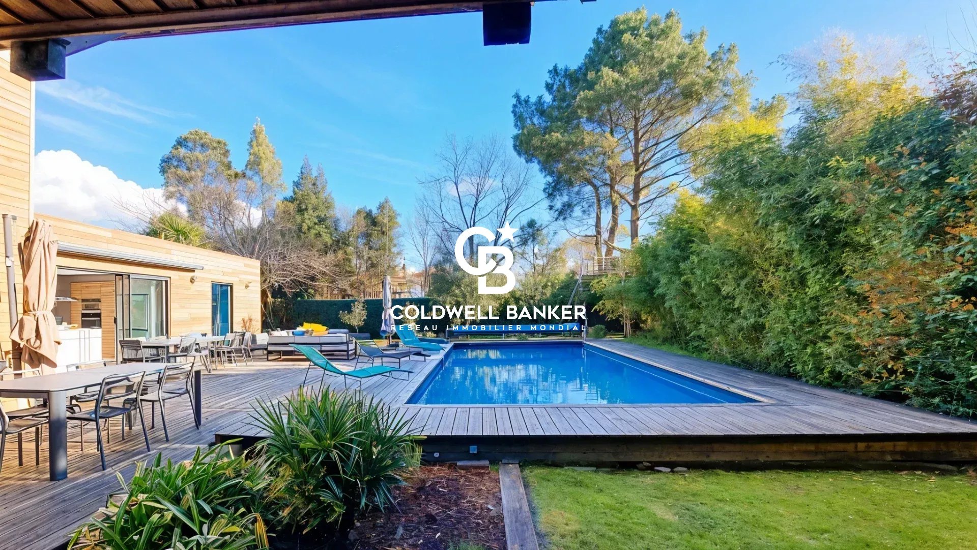 À l’entrée de la presqu’île du Cap-Ferret, entre Bassin d’Arcachon et océan, découvrez cette magnifique villa d’architecte d’environ 247 m2, implantée sur un superbe terrain arboré de plus de 2 500 m2 avec piscine chauffée. Nichée dans un environnement résidentiel calme et verdoyant, cette propriété lumineuse séduit par ses volumes généreux, sa distribution fluide et ses nombreuses ouvertures sur l’extérieur. Le rez-de-chaussée s’organise autour d’une vaste pièce de vie baignée de lumière, avec cuisine ouverte entièrement équipée et accès direct aux terrasses. Une entrée avec dressing, un cellier, un WC invités ainsi qu’une première aile nuit composée de trois chambres et d’une salle d’eau complètent ce niveau. À l’étage, un couloir avec rangements dessert deux chambres, une salle de bain avec espace buanderie, un WC indépendant ainsi qu’une élégante suite parentale avec dressing et salle d’eau. Les chambres bénéficient de terrasses offrant une vue dégagée sur le jardin. À l’extérieur, le parc paysager sans vis-à-vis accueille une grande piscine chauffée, une terrasse en bois, une cuisine d’été et un boulodrome, invitant à profiter pleinement de l’art de vivre du Bassin. Un atelier technique ainsi que plusieurs places de stationnement complètent ce bien. À seulement quelques minutes des commerces et à environ 35 minutes de l’aéroport de Bordeaux-Mérignac. DPE C (106 kWh/m2/an) – GES C (22 kgCO2/m2/an) Montant estimé des dépenses annuelles d’énergie pour un usage standard : entre 1 790 € et 2 460 € Prix net vendeur : 1 540 000 € Honoraires de l'agence à la charge de l’acquéreur : 60 000 € TTC (3,9 %) Prix du bien : 1 600 000 € FAI Les informations sur les risques auxquels ce bien est exposé sont disponibles sur : www.georisques.gouv.fr Pour plus d'informations, veuillez contacter Florence BESSONNEAU – RSAC 883 917 106 – RCP 057 160 041 0002 Retrouvez l’ensemble de nos biens sur IMMOBA.FR