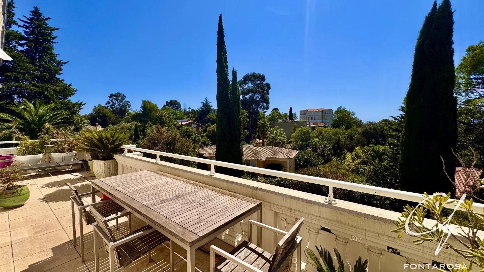 L’appartement offre de superbes volumes baignés de lumière, avec un vaste séjour ouvert sur une magnifique terrasse bénéficiant d’une vue dégagée sur la nature et les collines de l’Estérel.